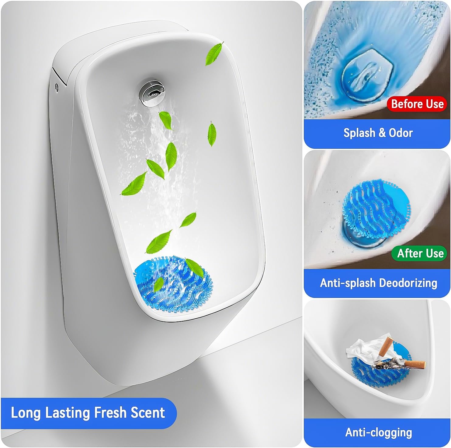 10 PCS Urinal Screen Deodorizer, 3D Wave Anti-Splash Urinal Cakes Guards Odor Protection Mats, 30 Day Long-Lasting Ocean Scented Fresh Pads for Men's Toilets in Bathroom Office Schools Hotels