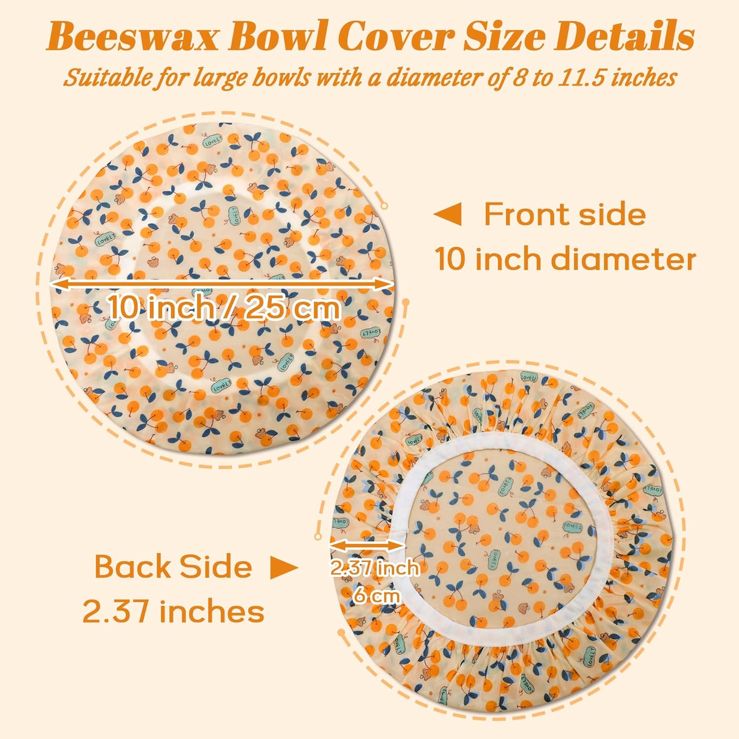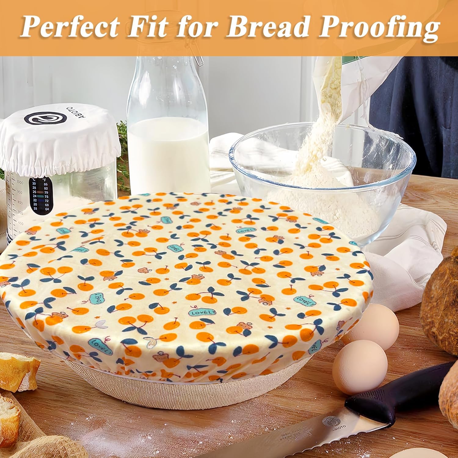 OHIYO Reusable Beeswax Bowl Covers (2 Large), Elastic Cotton Cloth Sourdough Bread Cover, 12 inch Reusable Bowl Caps for Bread Proofing Baskets and Large Mixing Containers