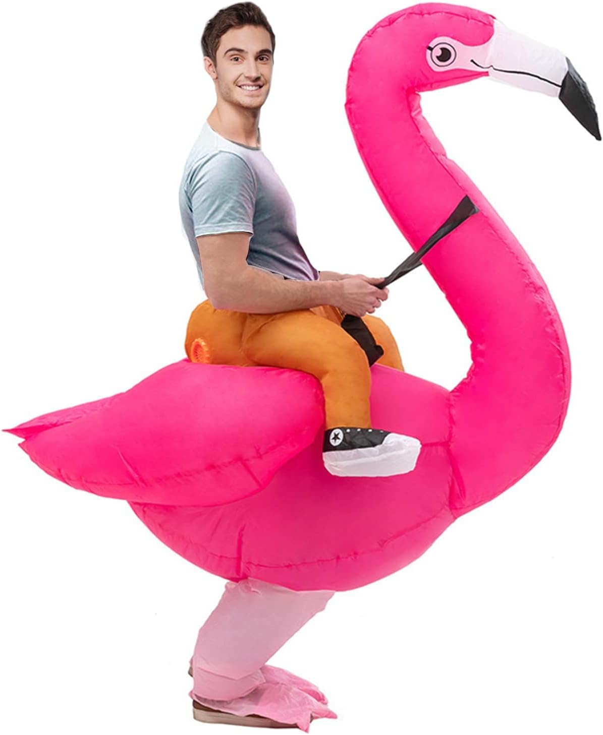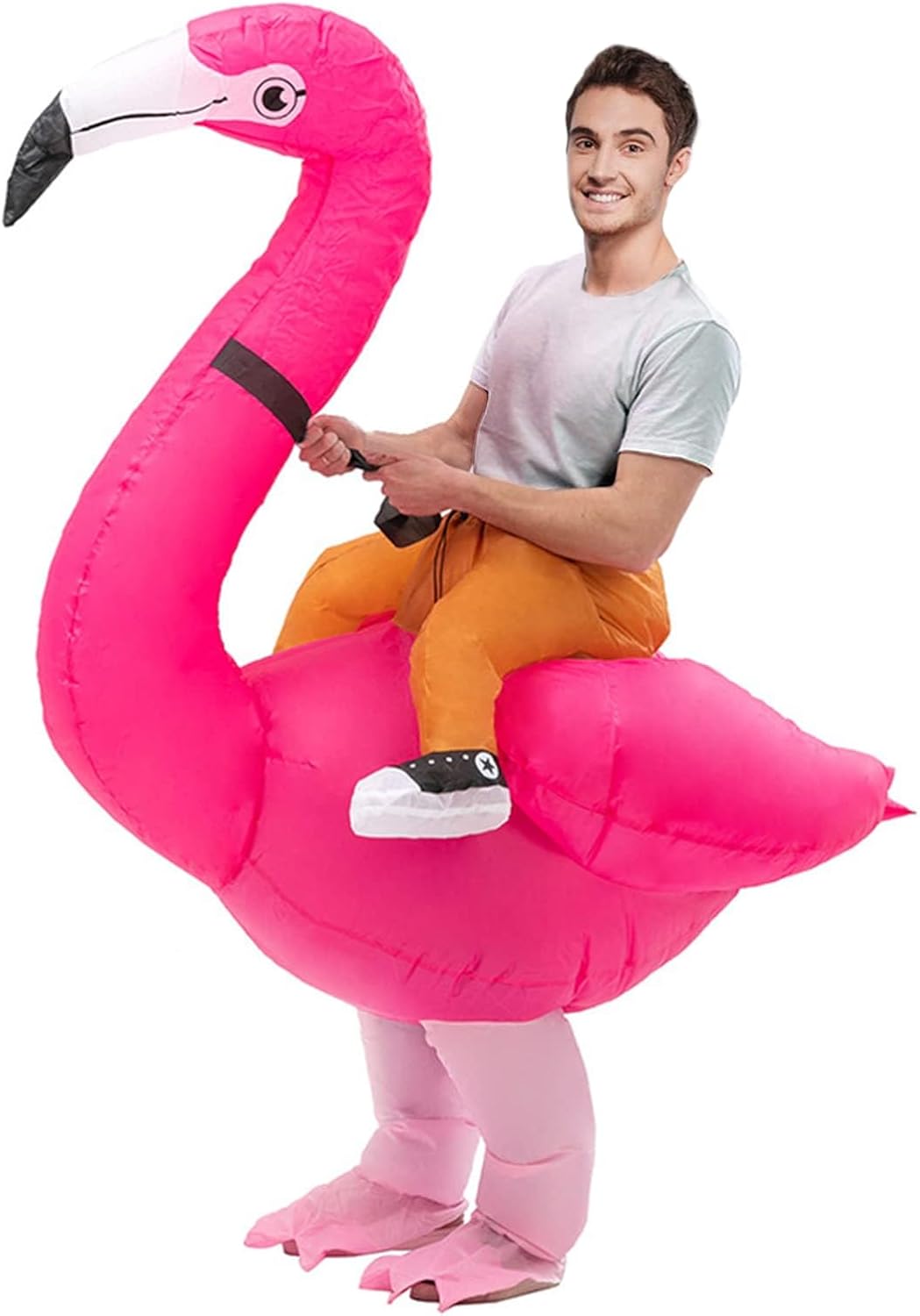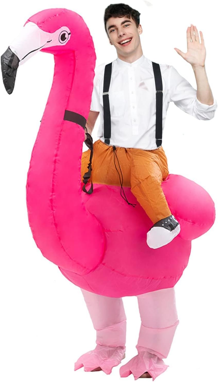 Constructed from durable materials, this jumpsuit is designed to last, ensuring you can wear it year after year. Cleaning and maintenance are a breeze — simply wipe it down with a damp cloth and let it air dry before storing. With its fun and festive design, the Flamingo Inflatable Halloween Jumpsuit is a must-have addition to your Halloween costume collection. Make a statement this Halloween season with this whimsical and attention-grabbing costume.