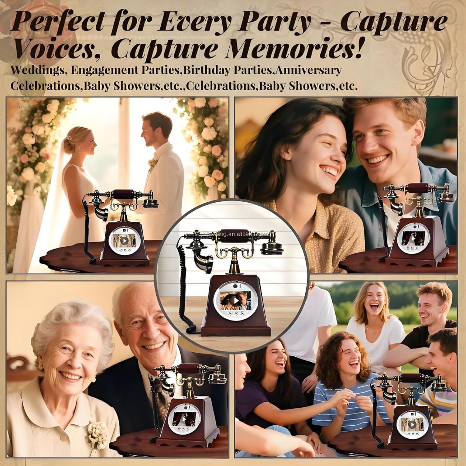 New Video Audio Guest Book Wedding Phone, 128G 1080P HD Video Audio Phone Guestbook, Creative Record Audio GuestBook for Wedding Bridal Shower, Birthday, Graduations, Baby Shower(A)