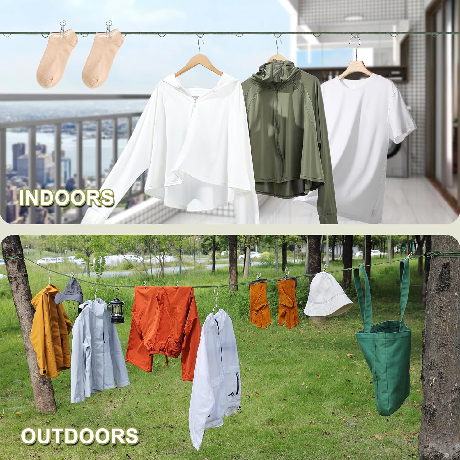 The Vigorport Portable Clothesline is a versatile and durable solution for drying clothes both indoors and outdoors. It is compact and portable, making it perfect for travel, camping, or everyday use when traditional drying methods are not an option. With its unique design featuring 12 windproof clothespins, it securely holds garments in place, even heavier items. Made with high-quality materials, this clothesline is built to last and can withstand various weather conditions.