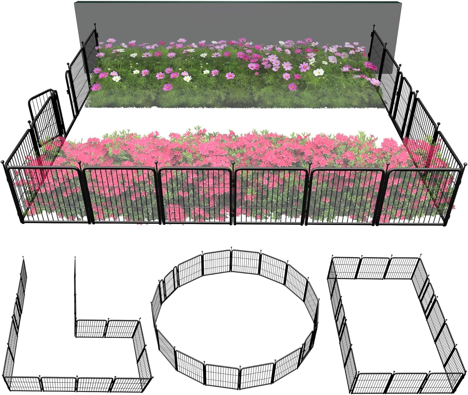 FXW Garden Fence Outdoor for The Yard – 24in(H) x 30.4ft(L) Heavy Duty Metal Animal Barrier for Dog and Rabbit, Decorative Dog Fence, 16 Panels, Black