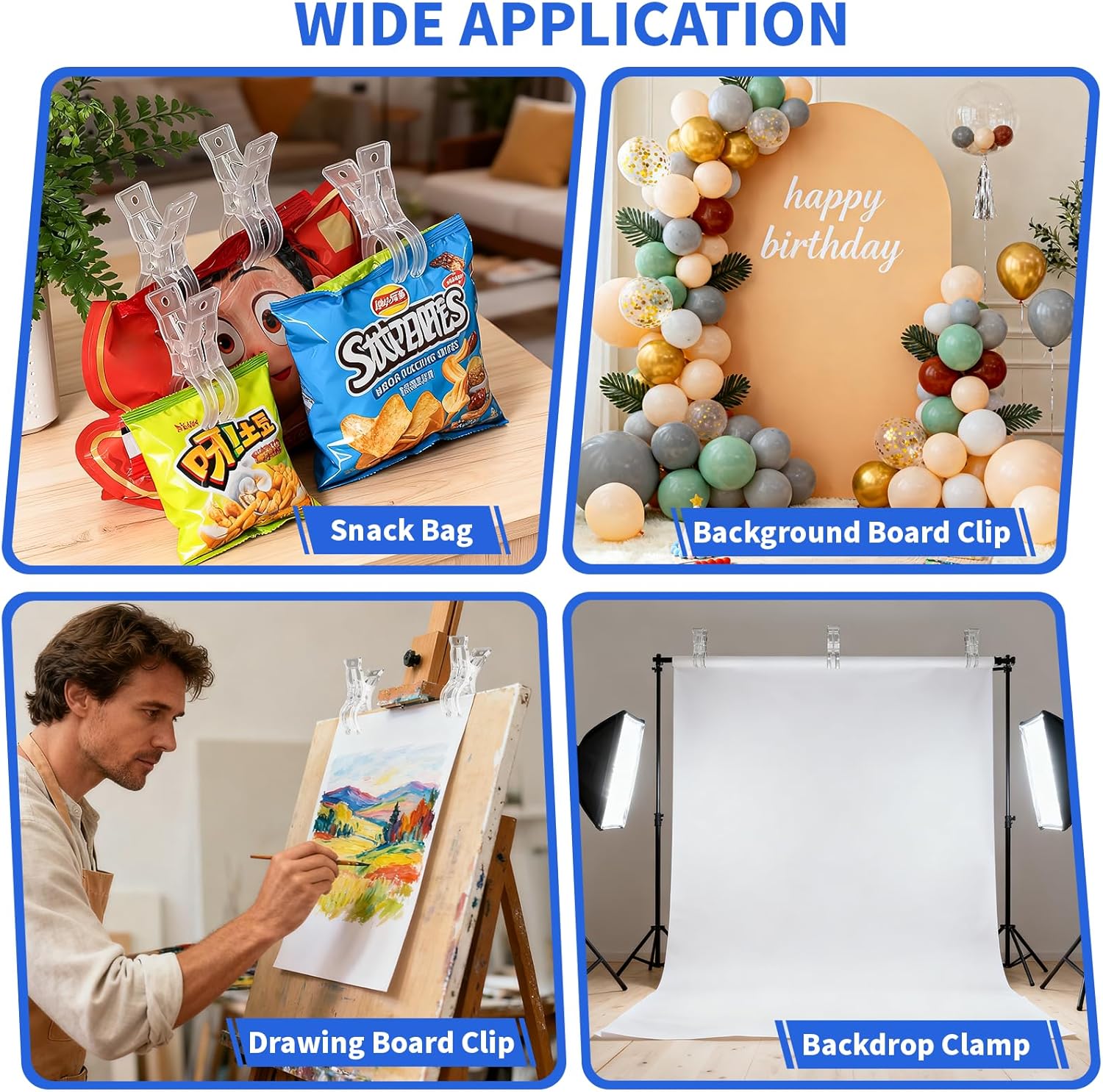 15 Pack Balloon Arch Clips, Large Clear Spring Clamps for Backdrop, 3.5'' Plastic Clips Supplies for Birthday Decoration Accessories Beach Towels Crafts Swimming Pool Photography Studios