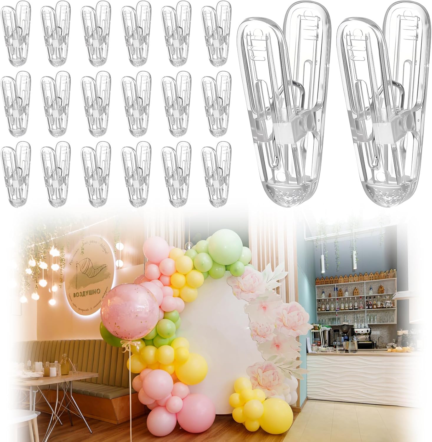 LemonRoad 20 Pack Balloon Arch Clips Plastic Spring Clamps 2.4 Inch Heavy Duty Clip for Balloon Arch Kit Birthday Decoration Crafts Backdrop Woodworking Photography Studios (Transparent)