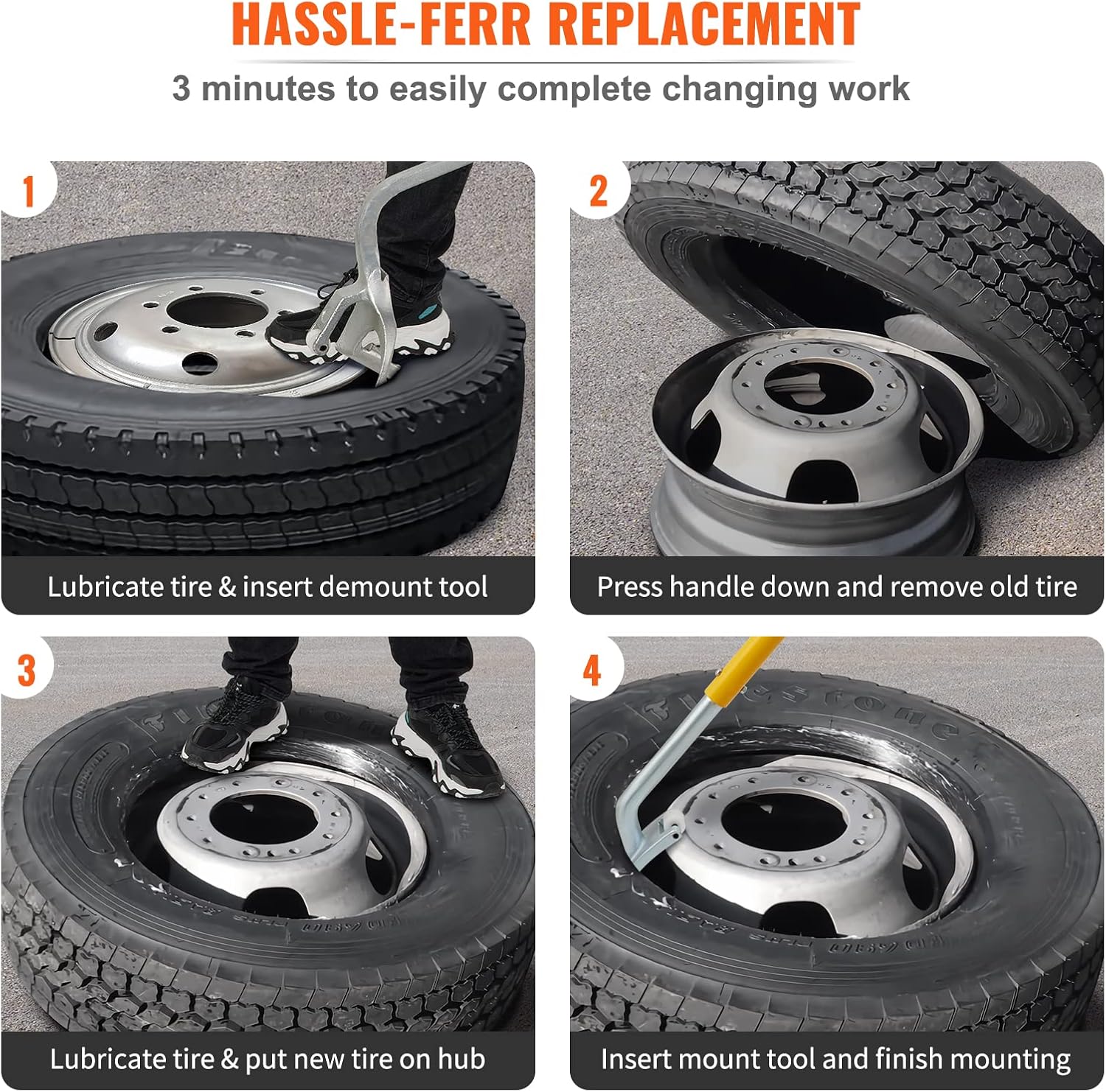 Vevor Steel Tire Mount Demount Tool 22.5" to 24.5" Semi Tire Changing Tool with Extra Bead Keeper, Tubeless Truck Bead Breaker Manual Tire Changing Tools for Car Repairing (Yellow)