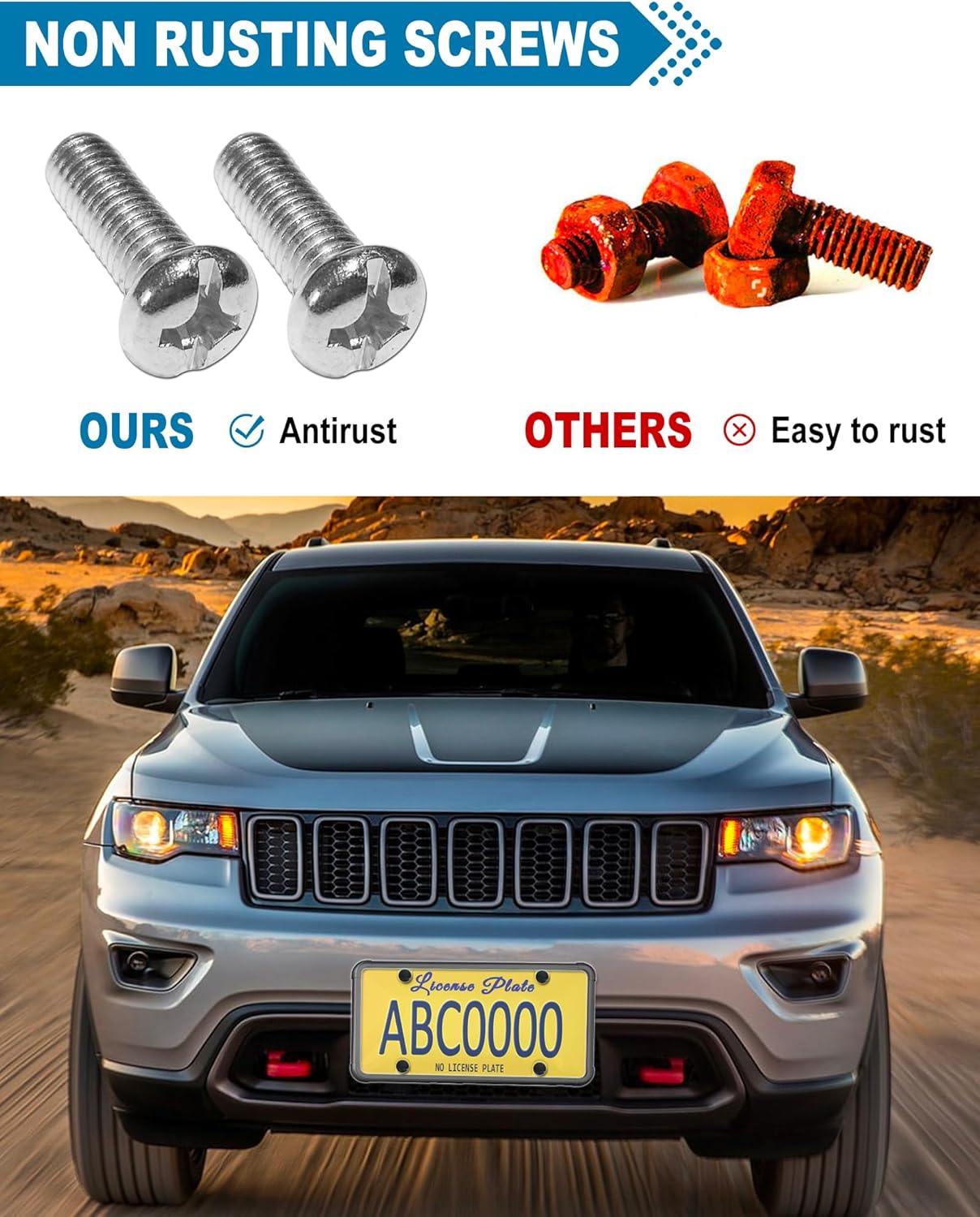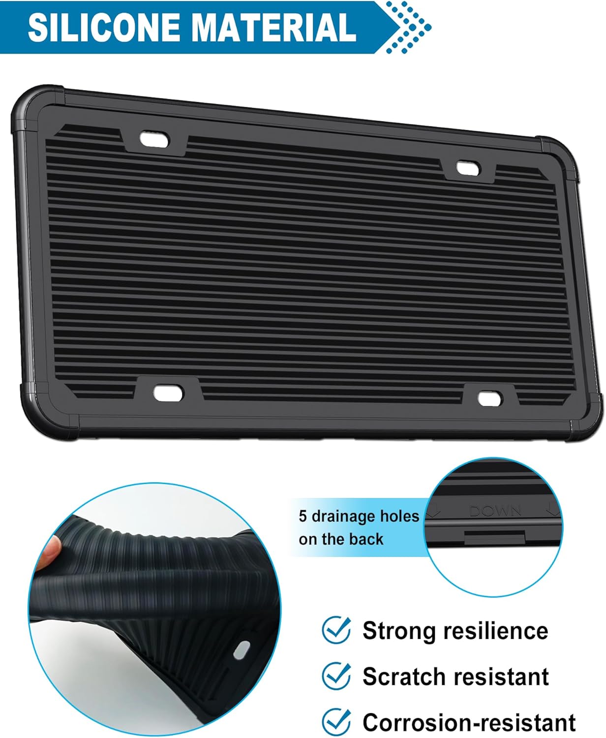 License Plate Frames Covers- Clear Bubble Car Tag Cover with Black Silicone Holder, 2 Sets Unbreakable Transparent Protectors for Front Rear, with Screws Caps