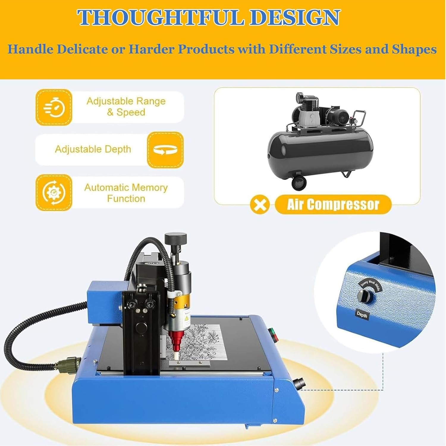 This engraver comes equipped with a powerful motor and adjustable speed settings, allowing you to achieve smooth and accurate engraving results. Its comfortable grip and ergonomic design make it easy to handle for long periods without causing any discomfort. Additionally, the adjustable depth regulator gives you complete control over the depth of your engravings, ensuring a perfect finish every time.
