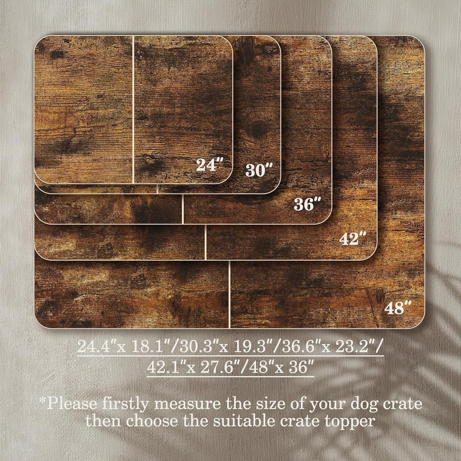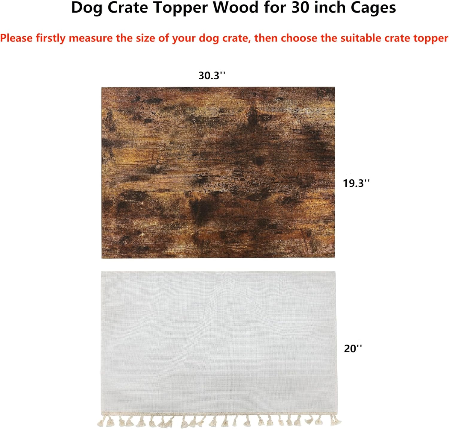 Dog Crate Topper Wood for 48 42 36 24 inch Cages, Table Topper with Tassel Curtain, Rustic Style Dog Kennel Topper, Rustic Brown(Dog Crate Not Include)