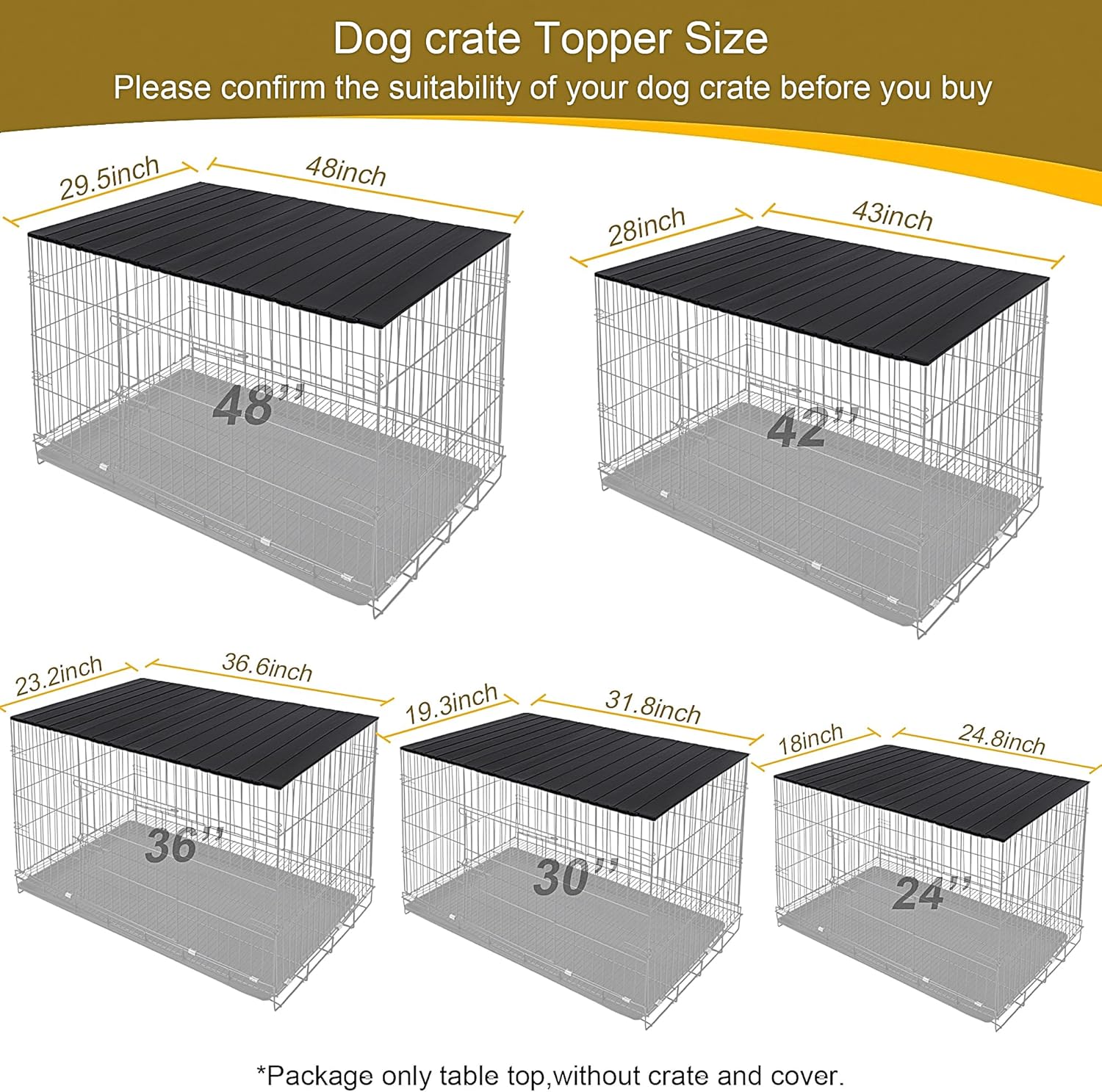 Dog Crate Topper with Magnets for 48 Inch Crate - Aluminum Foldable Dog Kennel Topper Decorative Storage Pet Crate Table Black (Only Topper)