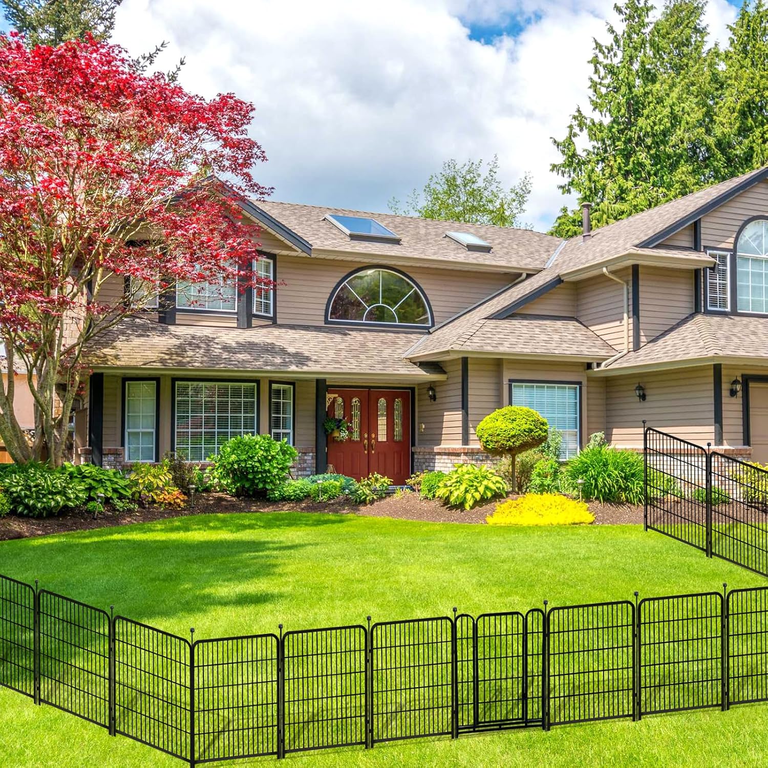 Animal Barrier Fence, 40 in(H)×27 in(L) 14 Panels Total 31 Ft(L), Garden Fence with Gate, Flower Bed Fencing, Black Metal Decorative Garden Fencing, Fence for Dogs Outside