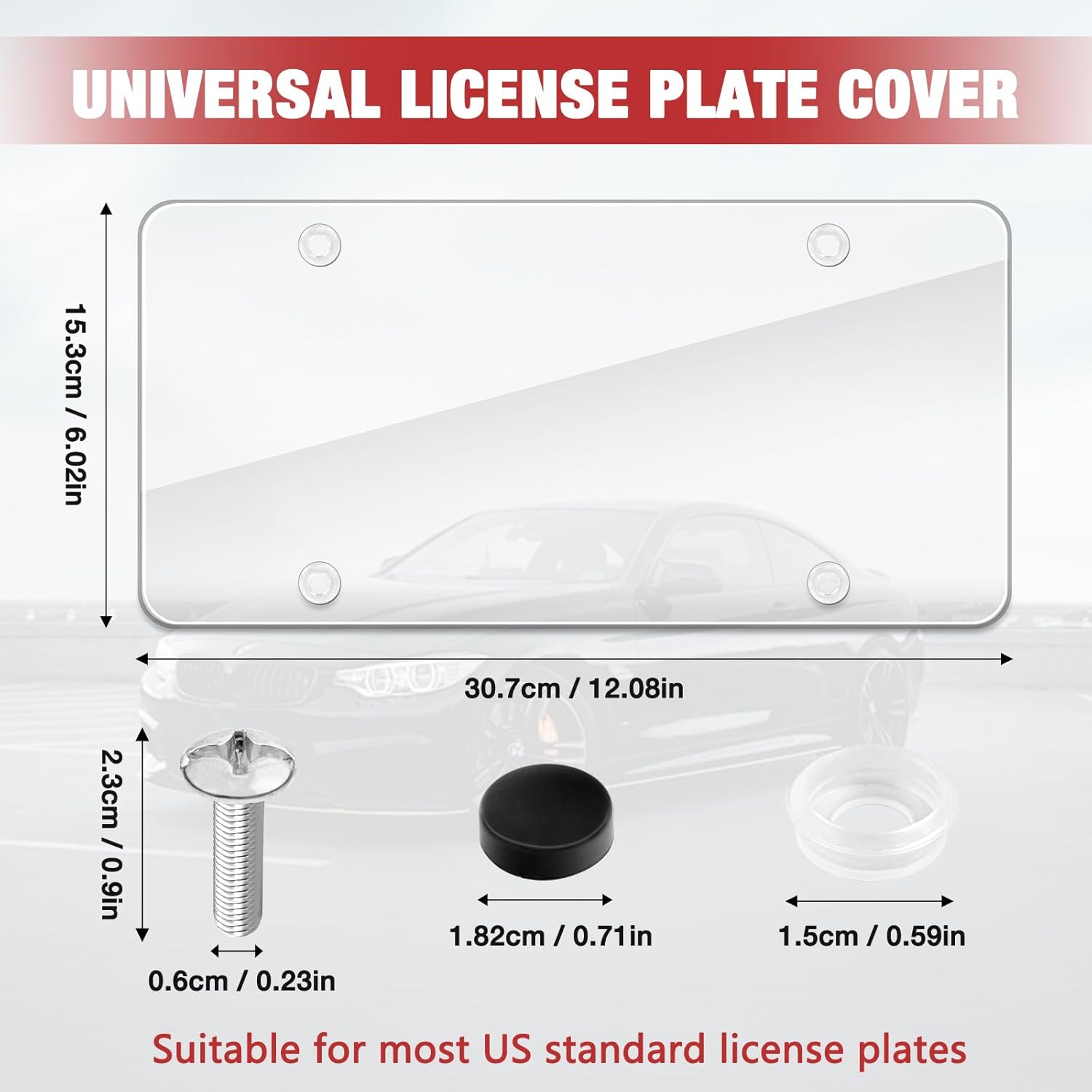License Plate Protector 2 Pack, Clear License Plate Cover 12.08 * 6.02’’ Universal, Plate Cover for Car Plastics, Car Frame Cover Shield with Screws Transparent Spacers Screw Caps by XIOGZAXI