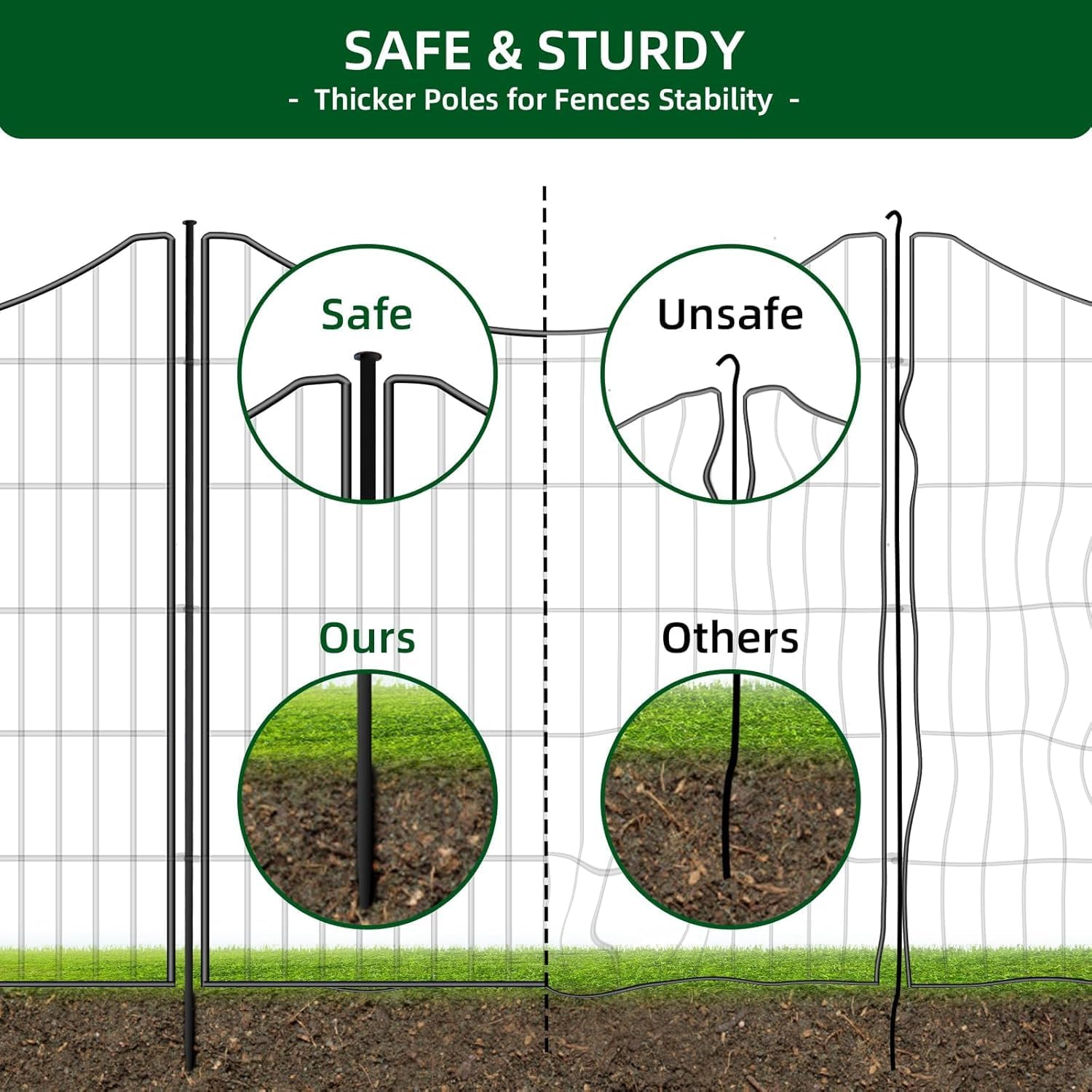 18 Panels No Dig Decorative Fence with Gate, 33 in(H) X 40.5 ft(L) Tall Garden Fence Animal Barrier, Rustproof Metal Wire Edging Border, Temporary Dog Fencing for Outdoor, Yard, Patio