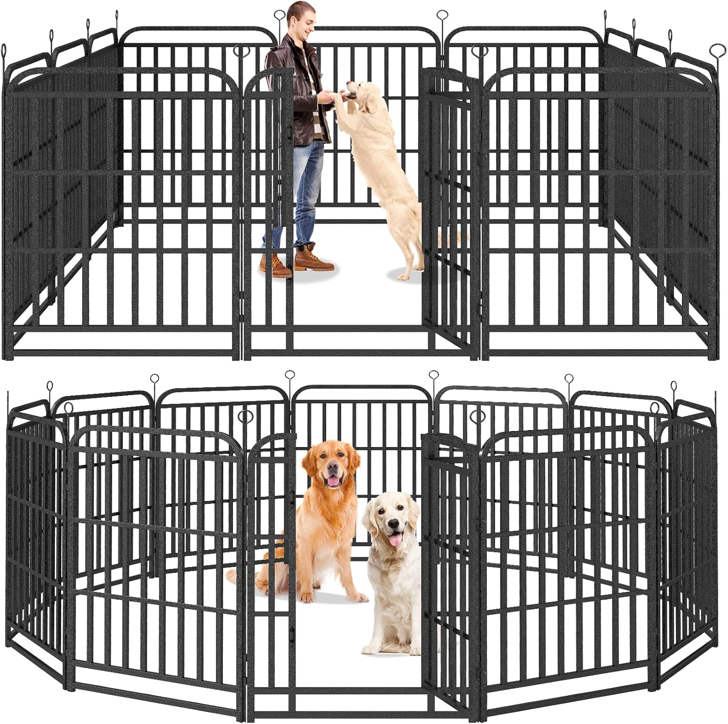 Dog Fence Outdoor 12 Piece Panels 40" Height, Square Steel Pipe with Reinforced Crossbars, Anti-Rust Heavy Duty Dog Playpen with Doors Portable for Yard RV Camping, Total 27FT, 57 Sq.ft, Snowy Black