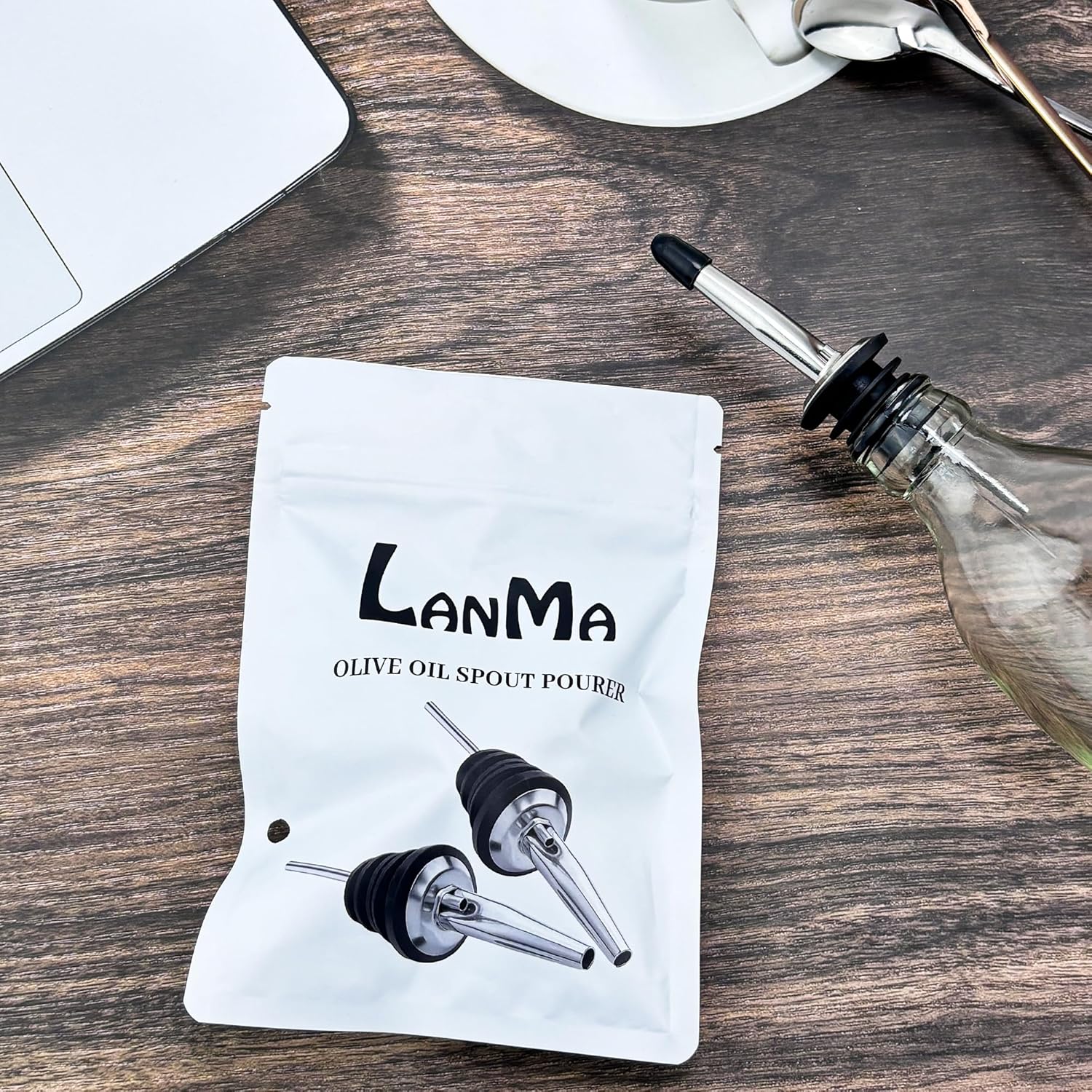 LanMa Olive Oil Spout Pourer, 2PCS Stainless Steel Liquor Bottle Pourers Spouts with Rubber Dust Caps