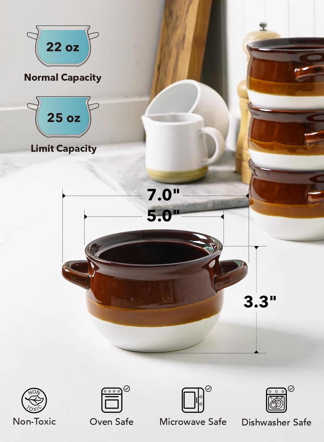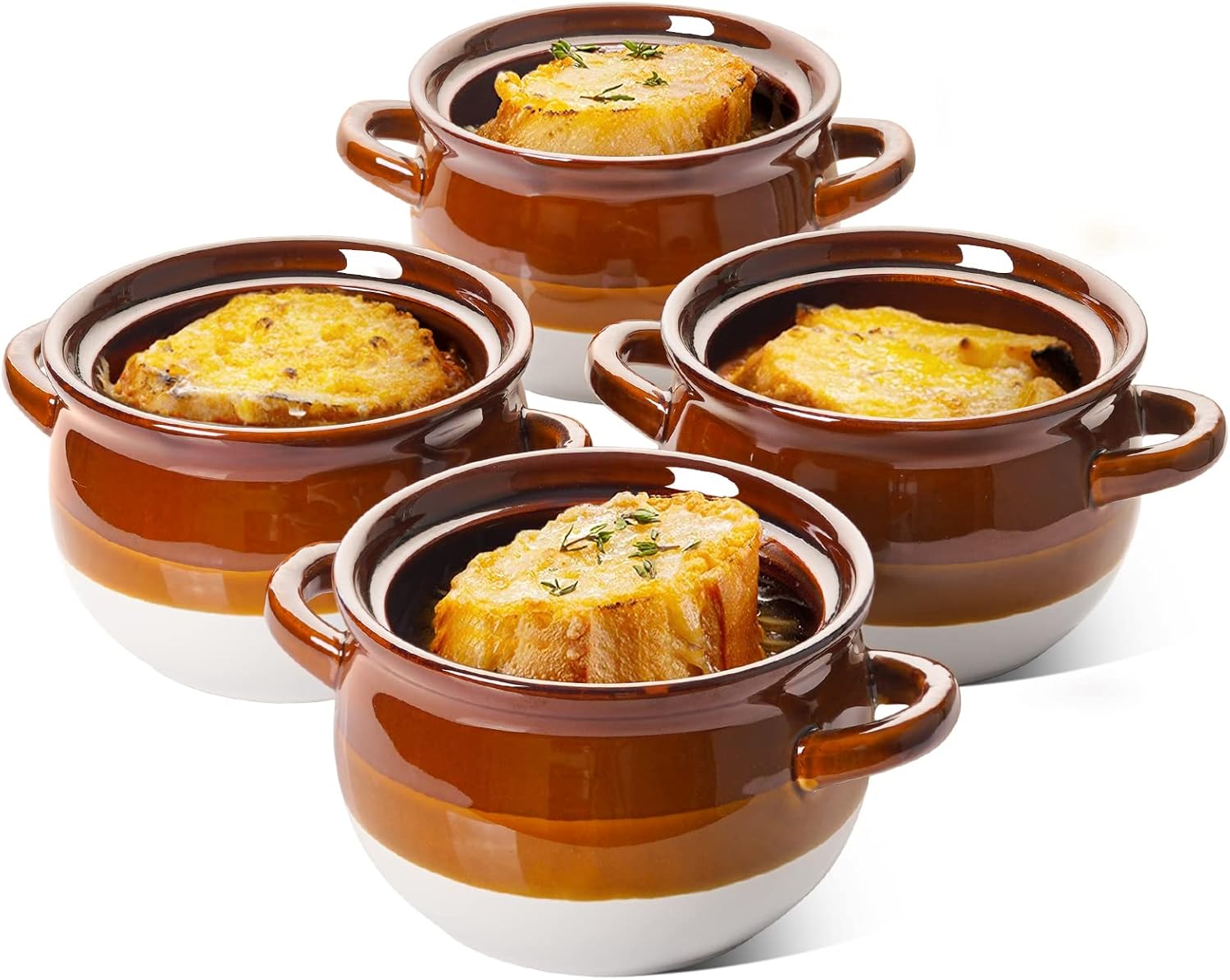 LE TAUCI French Onion Soup Bowls with Handles, 22 Ounce Ceramic French Onion Soup Crocks Oven Safe Serving Bowls for Soup, Chili, Beef Stew, Cereal, Pot Pies, Set of 4