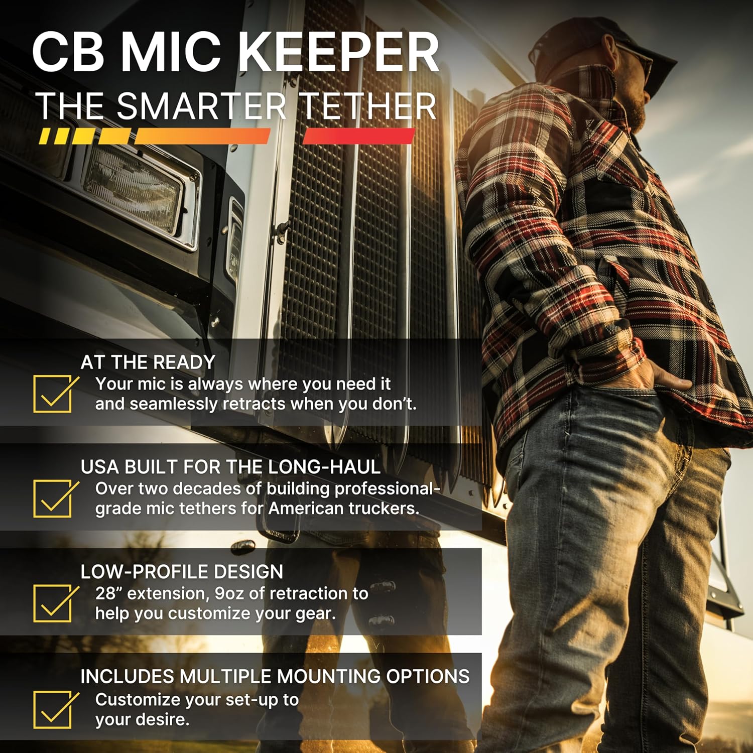 Gear Keeper CB Radio Microphone Keeper - Retractable Mic Holder With Heavy Duty Snap Clip Mount for Truck Radio - CB Radio Accessories With Lanyard & Mounting Hardware - Made in USA (Black)
