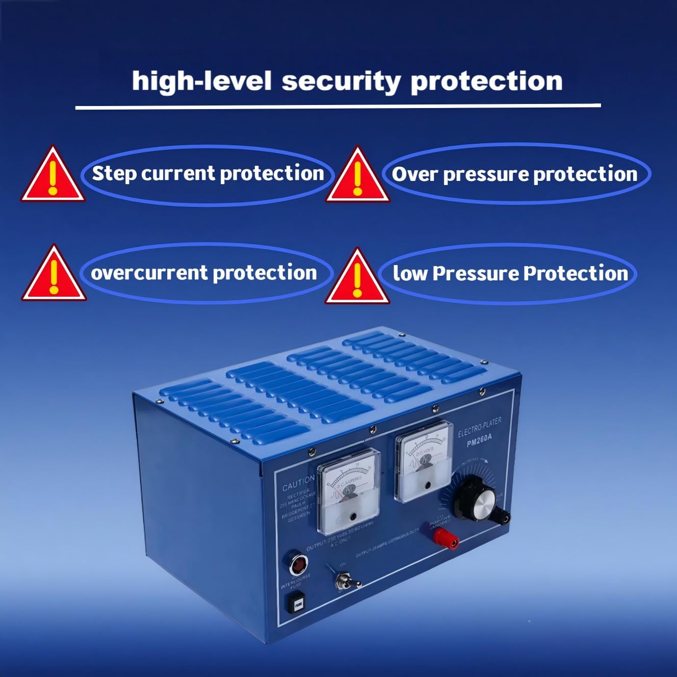 This electroplating machine stands out for its safe and user-friendly features. Built-in safety measures prevent overheating and short circuits, ensuring the user's safety during operation. The adjustable settings provide precise control over the electroplating process, leading to consistent and high-quality finishes on a variety of materials. Setting up and using the machine is straightforward, making it suitable for individuals with varying levels of expertise.