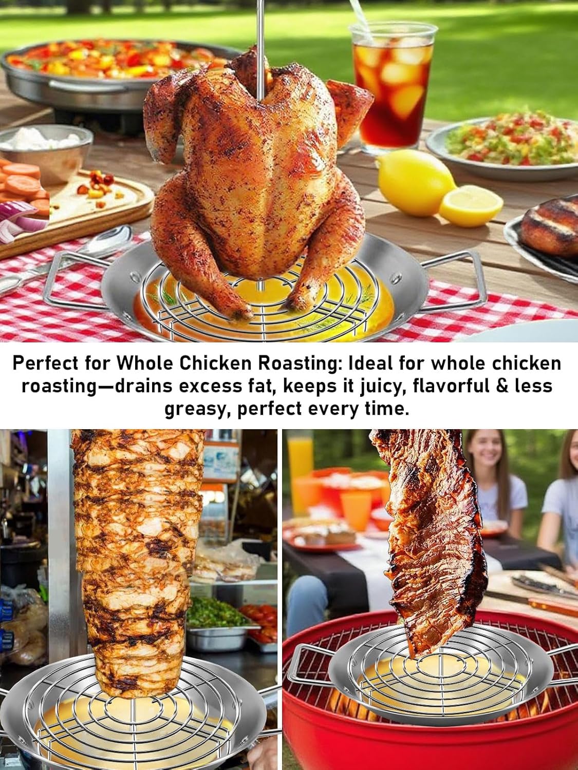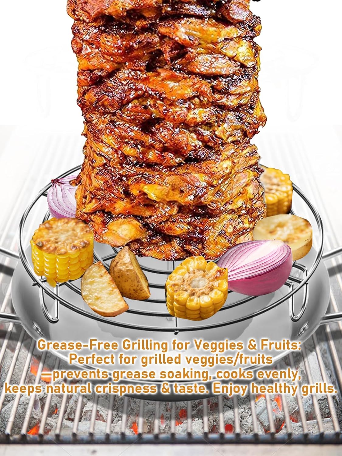 Al Pastor Skewers for Grill - Use Fat Separator Tray, (6.6×6.6in, Only Round Stainless Steel Tray), Fits Vertical Pan Skewer, Shawarma Skewer Stand, Brazilian Grill, for Separating Meat Grease