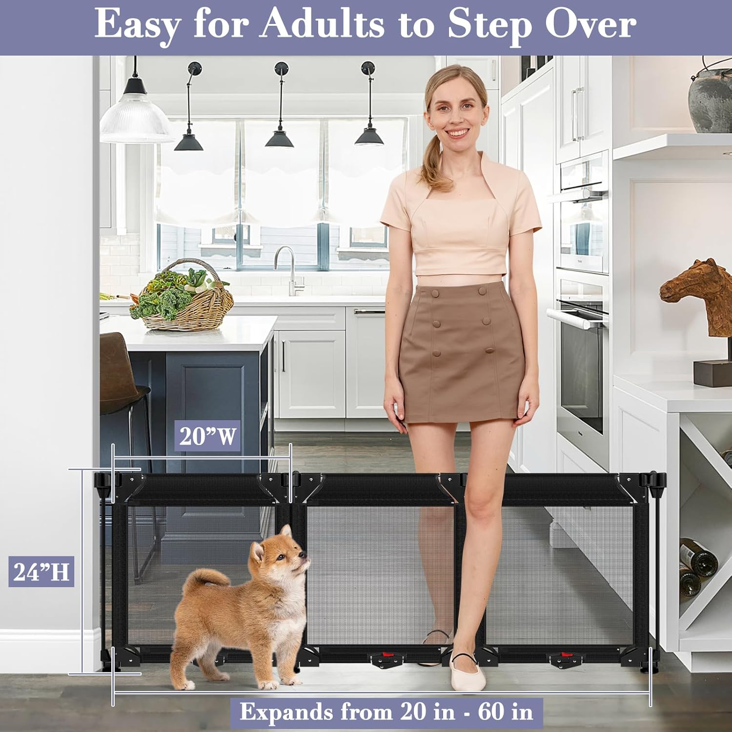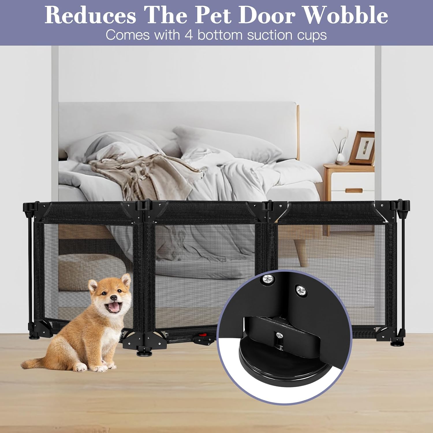 3-Panel Free Standing Dog Gate with 4 Suction Cups, 60 x24 Inch Tall Foldable Dog Gate Indoor, Step Over Pet Gate Collapsible Pet Fence Puppy Barrier Mesh Gates for Stairs or Doorways, Black