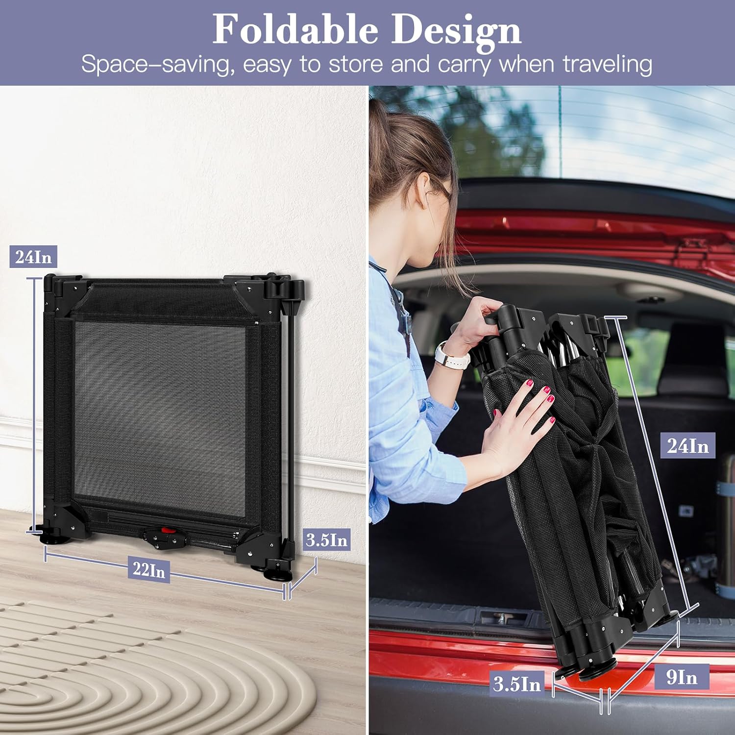 Ideal for small to medium-sized pets, this gate provides a secure barrier to prevent them from escaping or entering restricted areas. It's a great option for pet owners who want a portable and adjustable containment solution without the hassle of traditional gates that require installation.