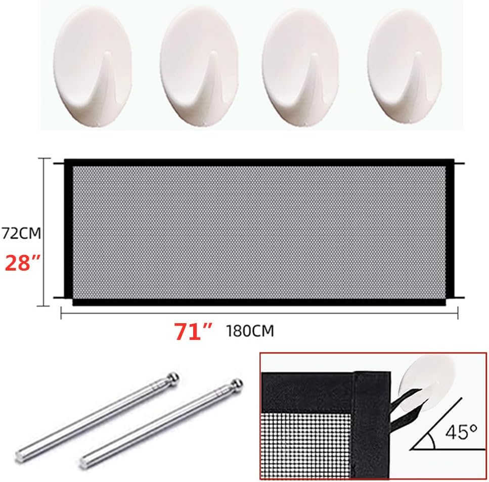 The Magic Dog Gate is a versatile and practical pet accessory designed to keep your furry friends safe and contained within a specific area of your home. Made from durable nylon mesh material, this gate is strong yet flexible, allowing you to easily fold and adjust it to fit any space. With dimensions of 71 inches by 28 inches, it is suitable for doorways, hallways, staircases, and other areas where you want to restrict your pet's access.