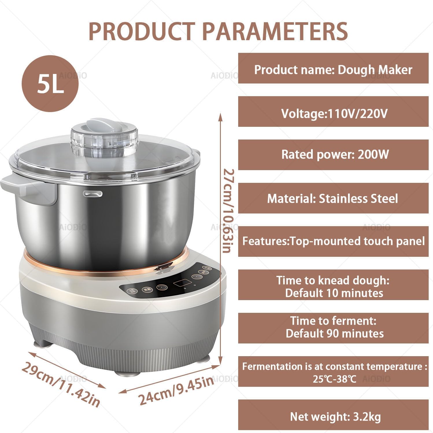 5L/7L Stainless Steel Dough Flour Mixer ,Electric Dough Machine,Microcomputer Timing, with Fermentation at 25-38°C, Open Top Design,for Pizza Bread 5L