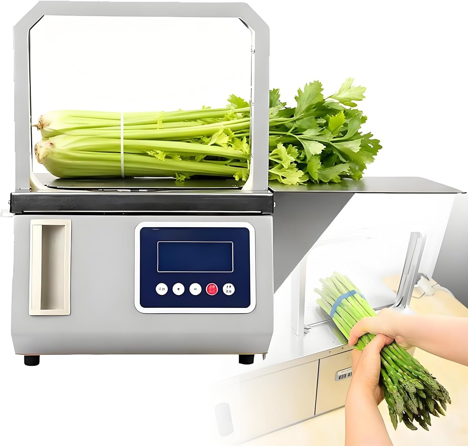 The MLYYYDSS Automatic Vegetable Strapping Machine is a valuable tool designed to streamline the process of bundling vegetables in commercial kitchens, food processing facilities, and agricultural operations. It is especially handy for strapping vegetables like broccoli and cauliflower securely. This machine offers an automatic strapping function that saves time and reduces the need for manual labor.