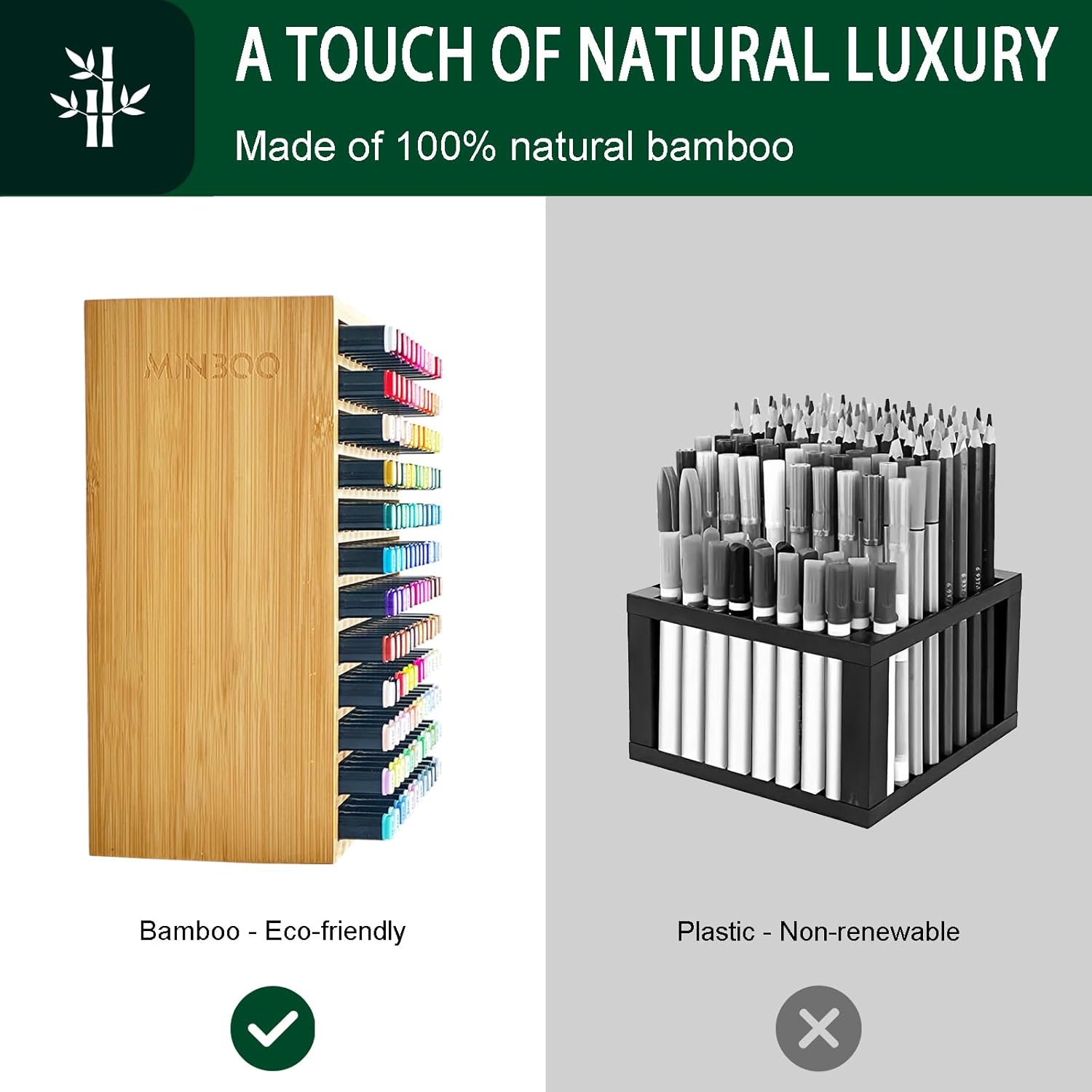 MinBoo Marker Organizer for 144 Markers, Bamboo Art Supply Storage Organizer Rack, Art Markers Pens Colored Pencils Paint Brushes Stationary Organizer Holder for Home Classroom Office Desk Decor