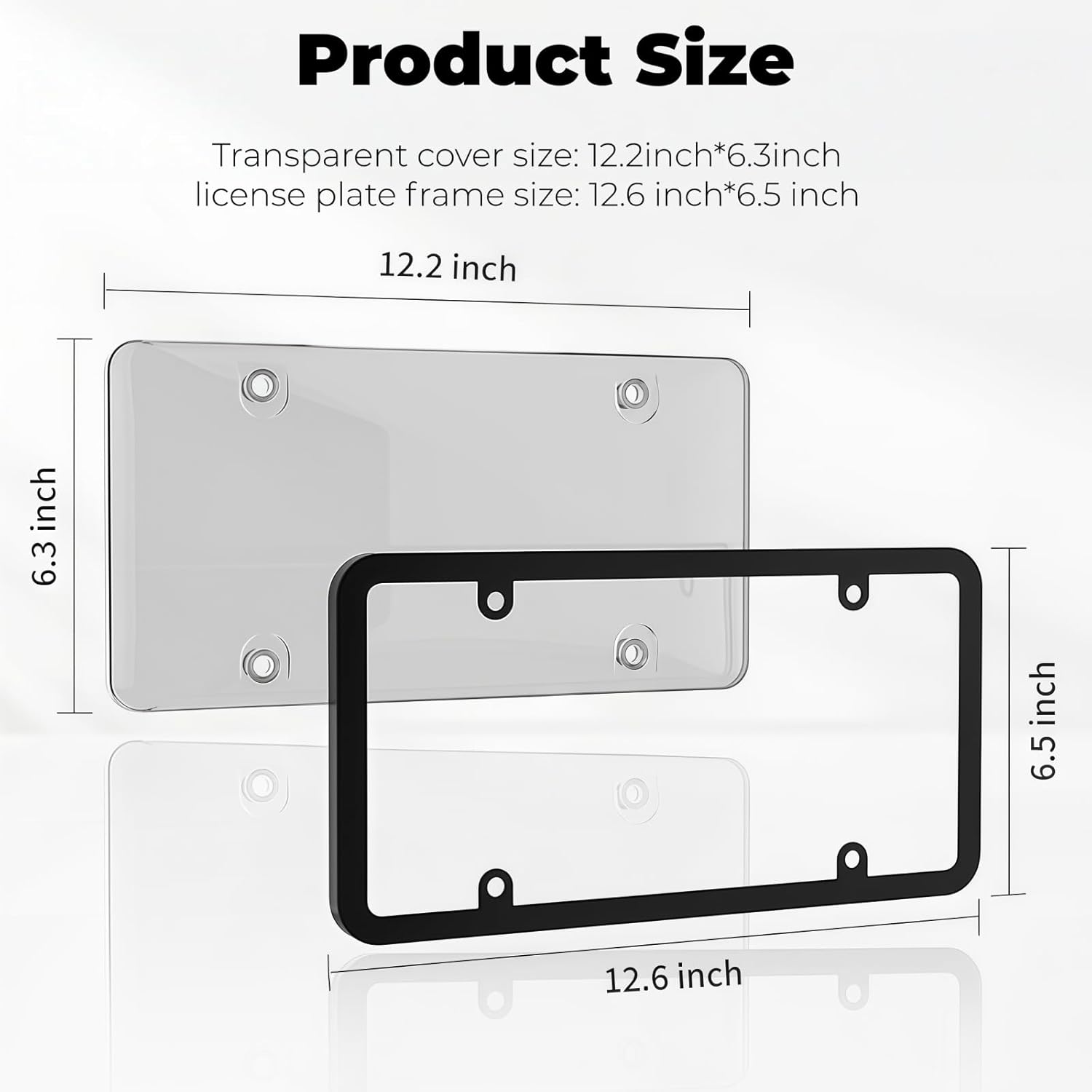License Plate Frames Protector 2-Pack, Unbreakable ABS Clear Smoked License Plate Cover with Screw Cover, Universal Fits All US Standard 6"x12" Front&Rear for Cars, Trucks, SUVs
