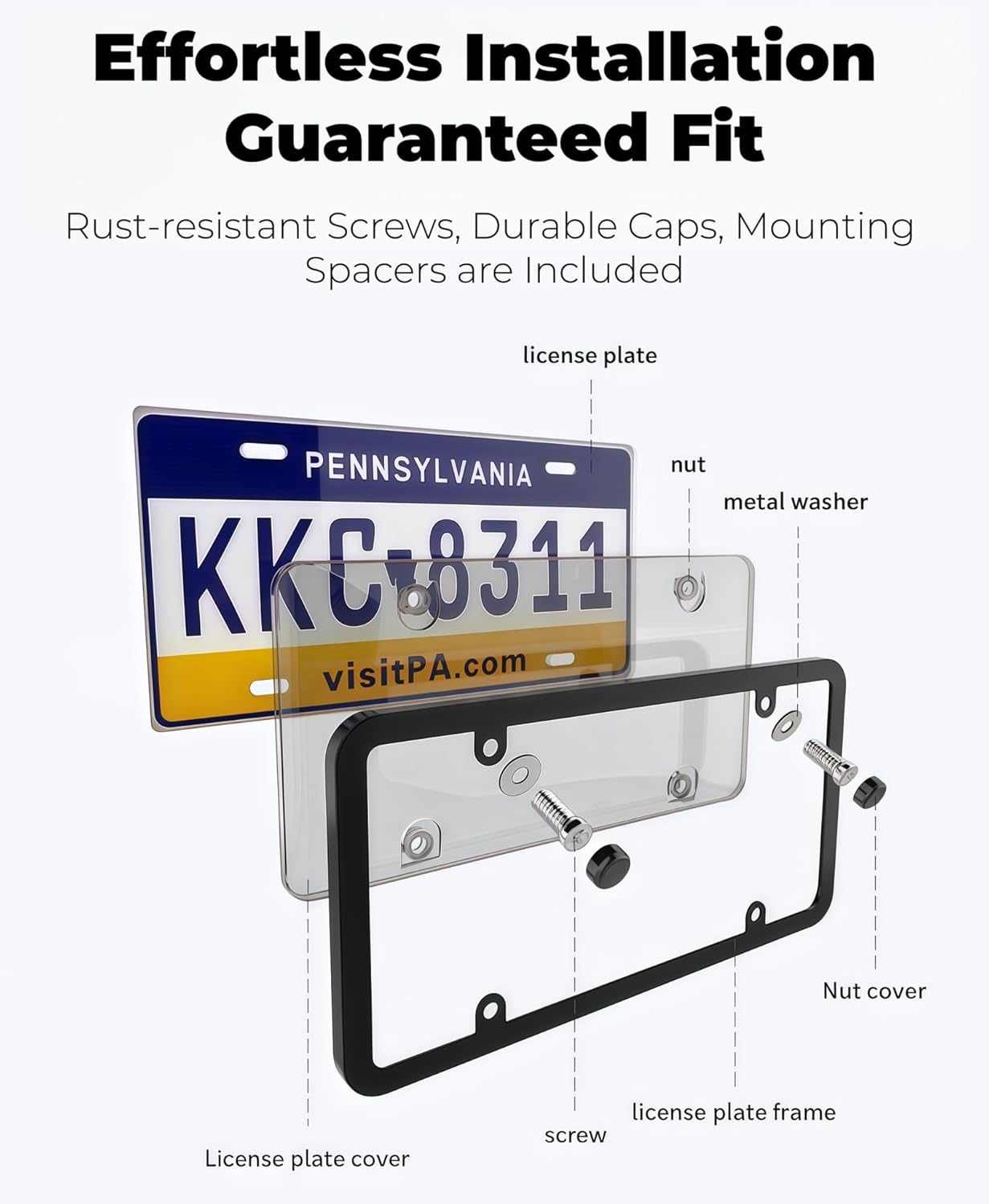 Installing the License Plate Protector is a breeze, as it requires no special tools or equipment. With an easy-to-use installation process, you can quickly attach it to your license plates securely. The sleek and clear design of the protector does not cover any important information on your license plate, ensuring it remains fully visible and legible.