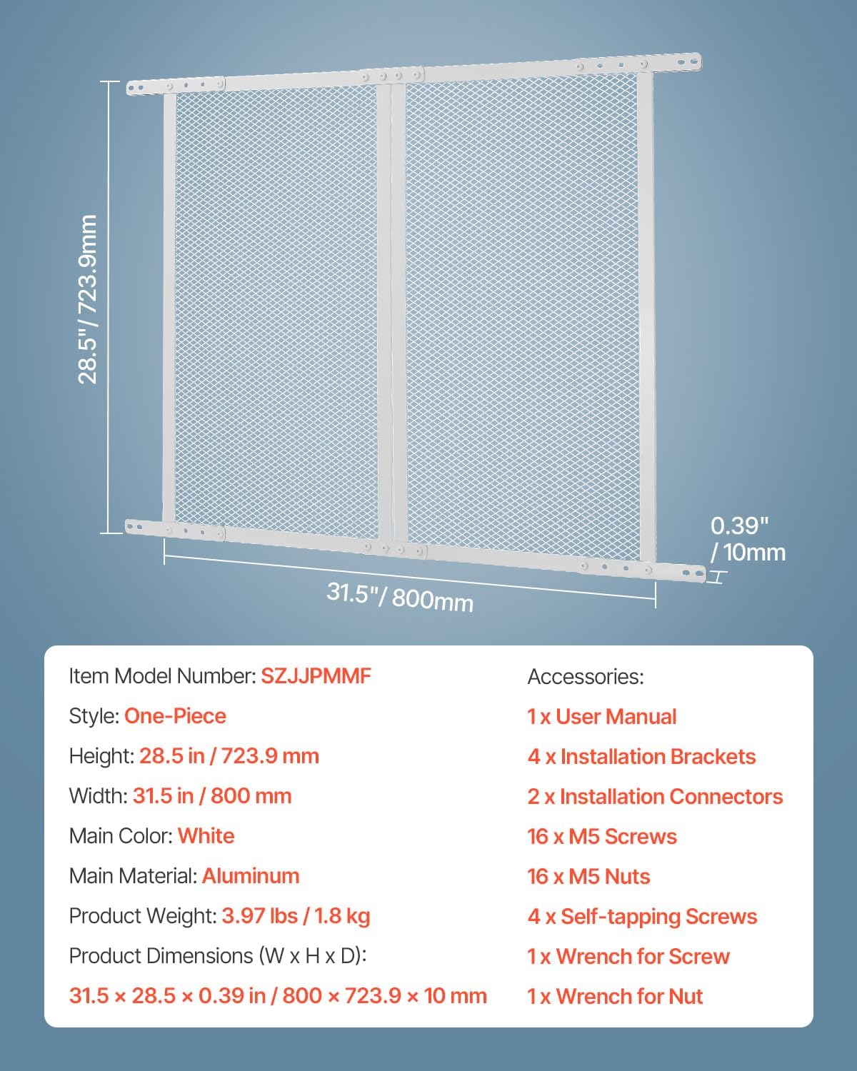 VEVOR RV Screen Door Protector, 28.5 x 31.5 inch Door Grille, Easy to Install and Disassemble, Reinforced Breathable Protective Mesh, Aluminum Alloy Camper RV Entry Protector for Pet Protection, White