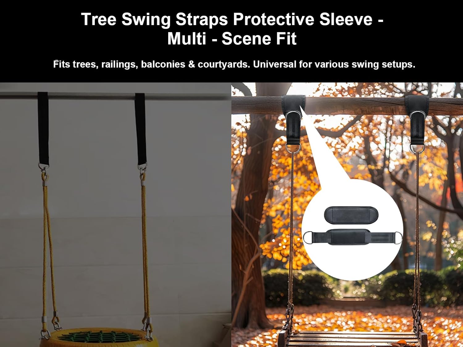 Equipped with protective sleeves, these straps help prevent damage to trees or other attachment points during use. This feature distributes the weight evenly, reducing the risk of harm and ensuring the longevity of the attachment point. Additionally, the protective sleeves make the straps suitable for use on various surfaces like trees, beams, and poles, offering users flexibility in where they can set up their swings.