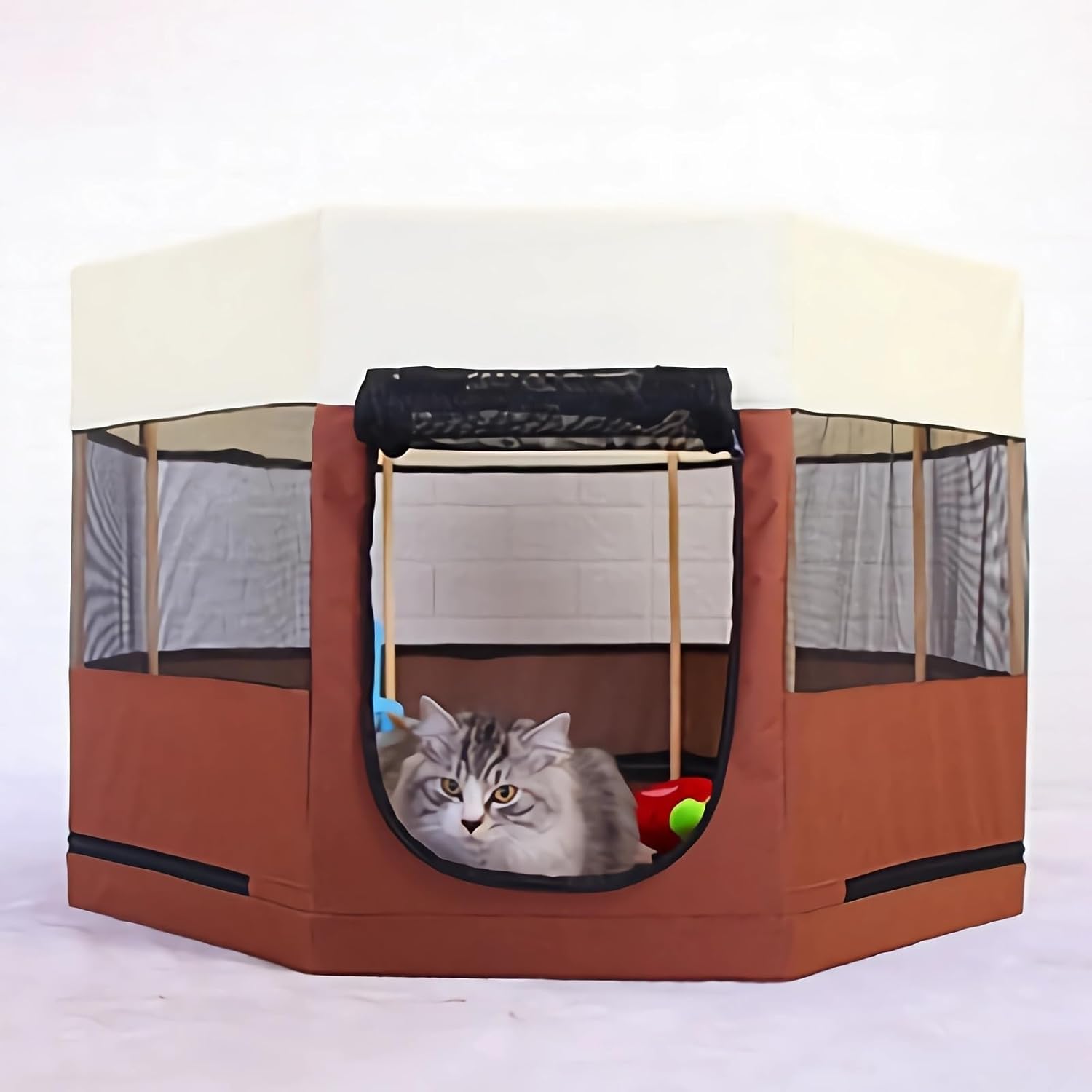 This portable playpen is a versatile and convenient solution for keeping pets or young children safe and secure both indoors and outdoors. Made of durable, breathable mesh fabric, this playpen provides a designated area for pets or kids to play and relax without feeling confined.