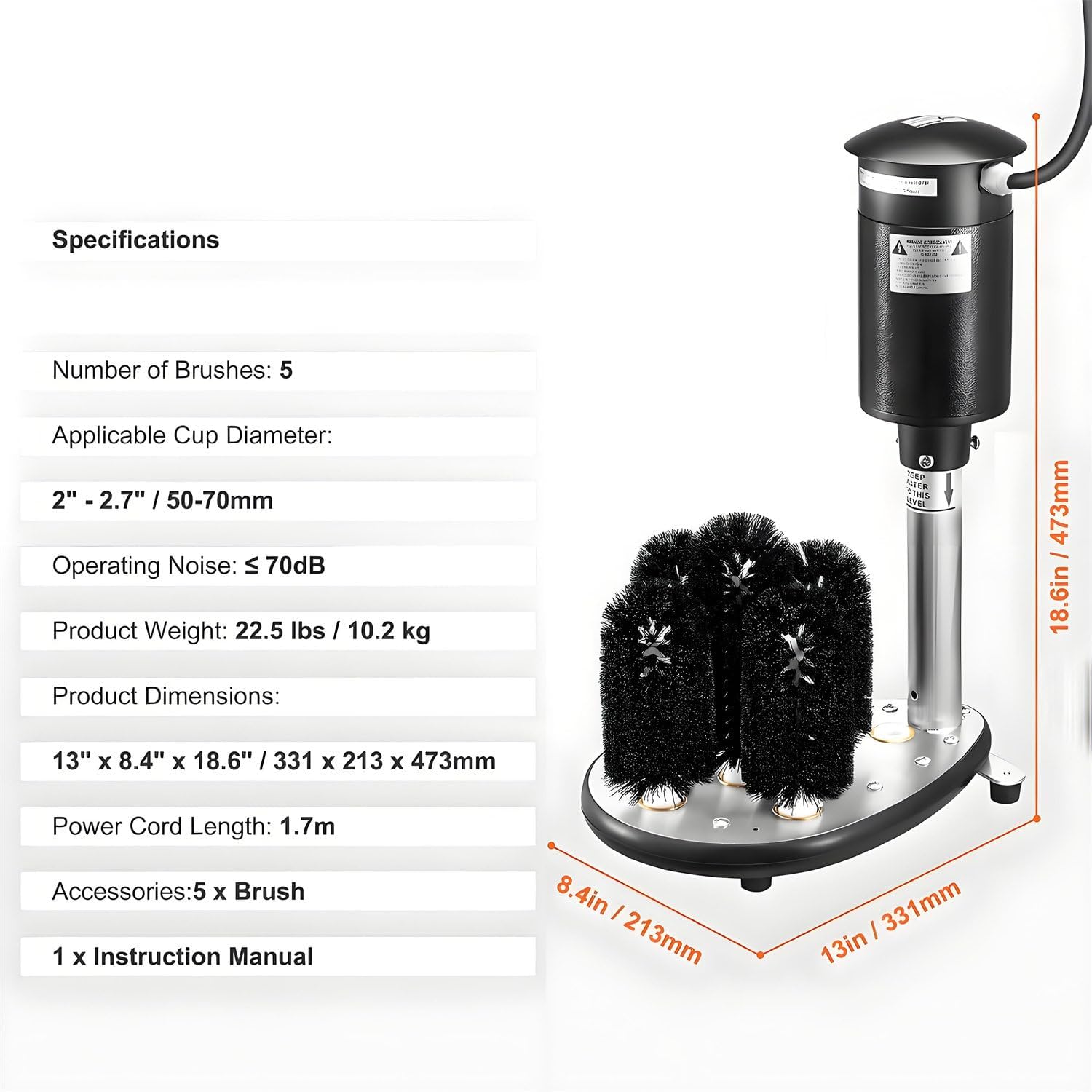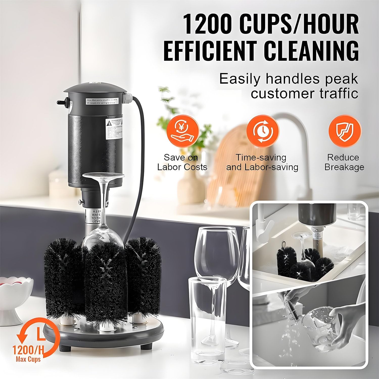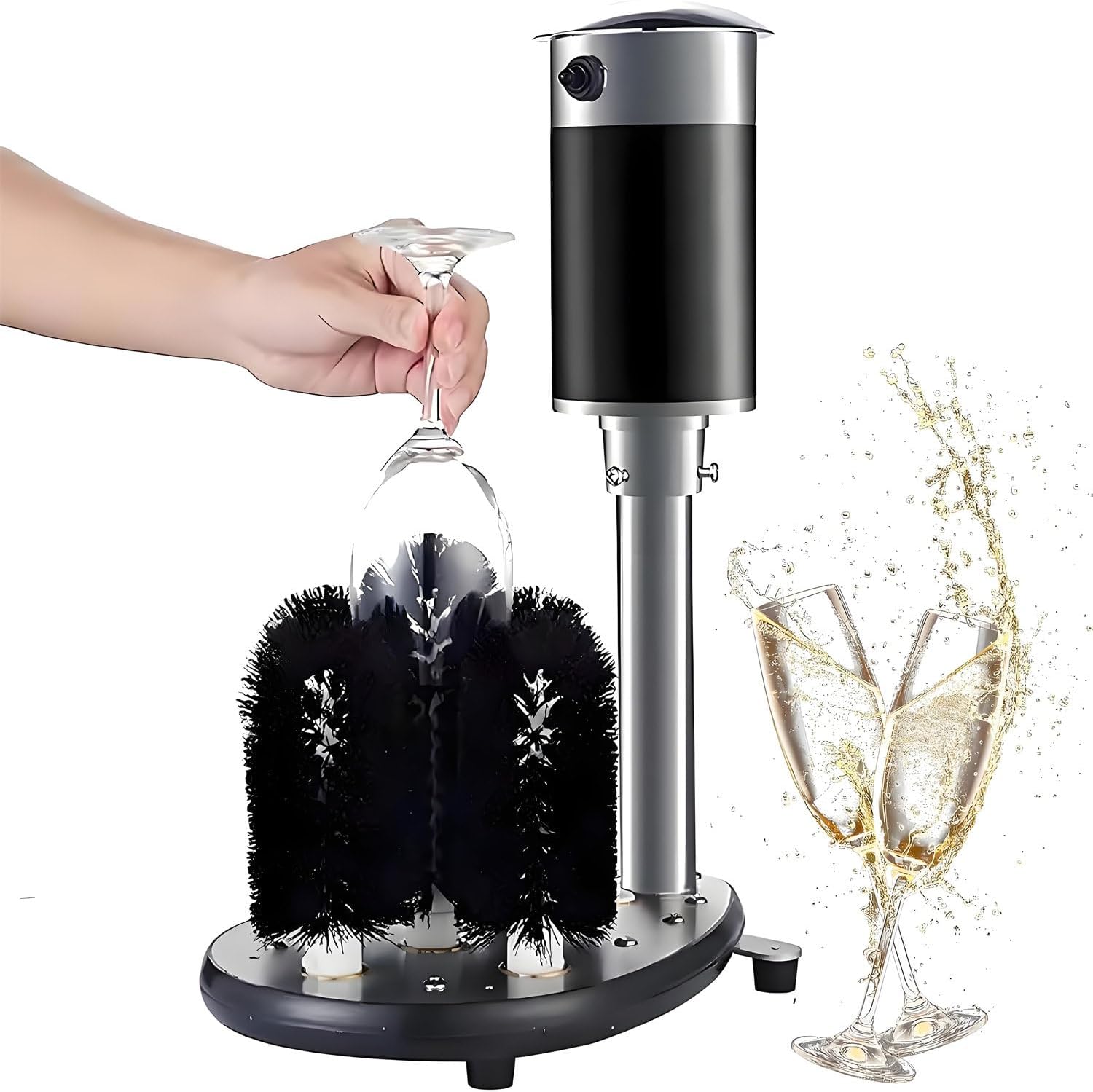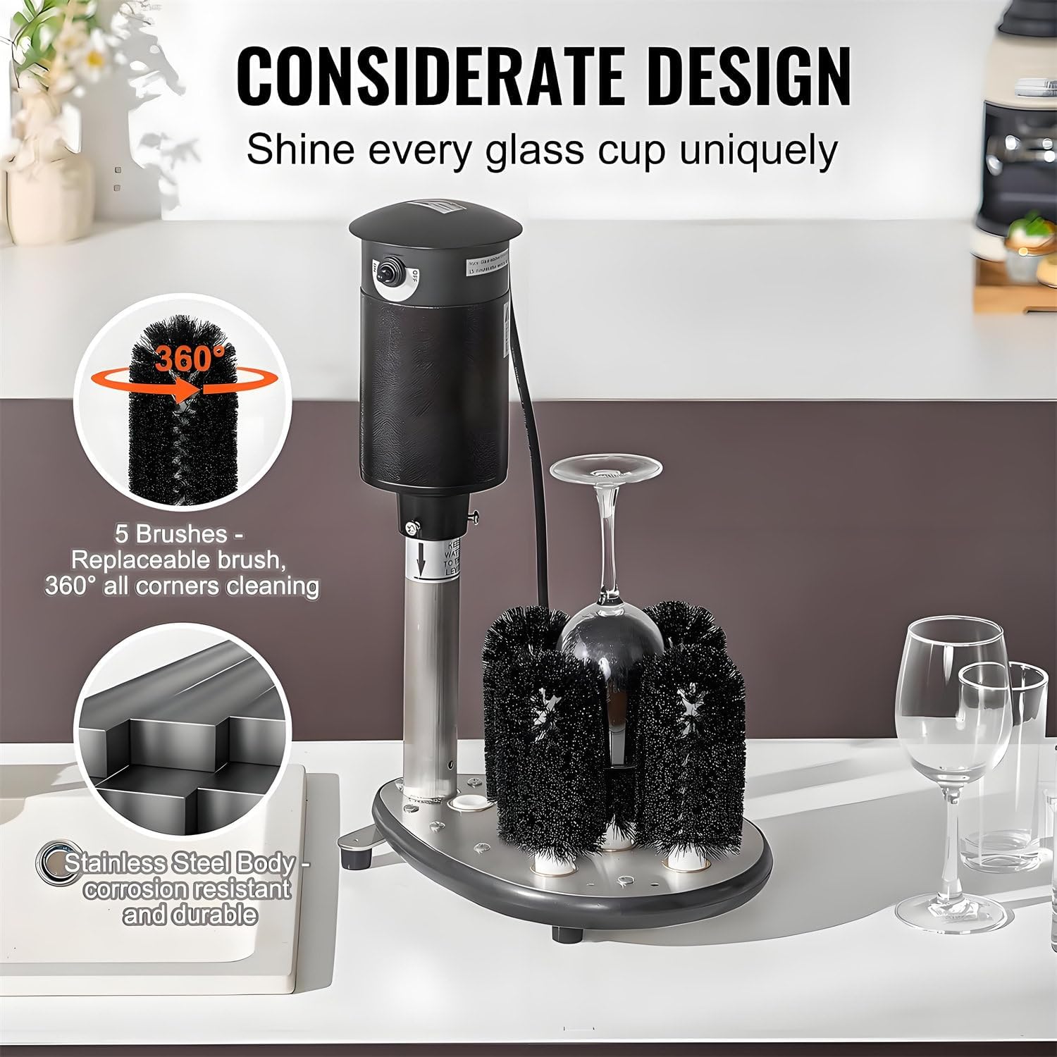5-Brush Electric Wine Glass Cleaner Commercial Cup Wiping Machine, Electric Upright Cup Washing Machine, Glassware Stainless Steel Cup Washing Machine 360° Cleaning Without Dead Angles