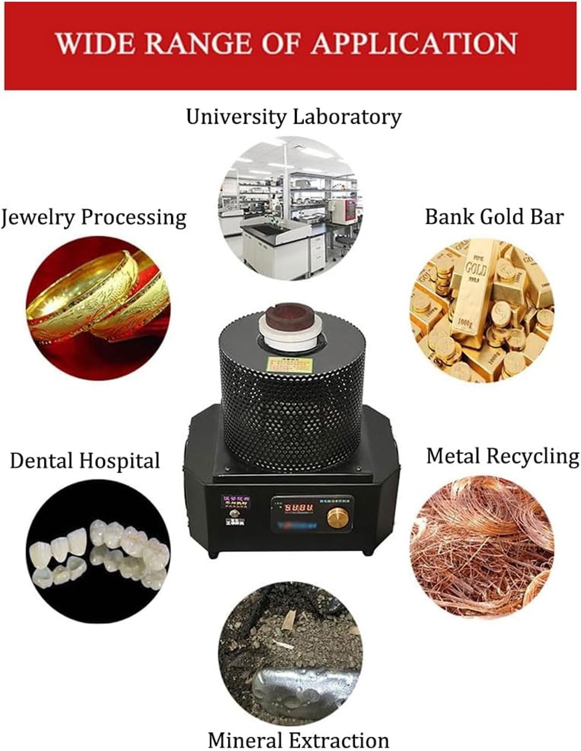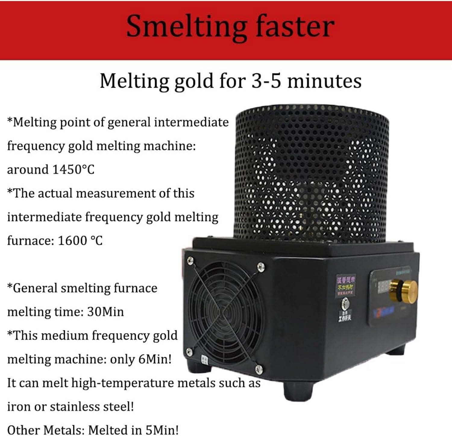 Portable Gold Melting Furnace,Commercial Medium Frequency Melting Machine, 1600℃ High Temperature Induction Heating Furnace for Gold, Silver, Aluminum, Copper (2kg)