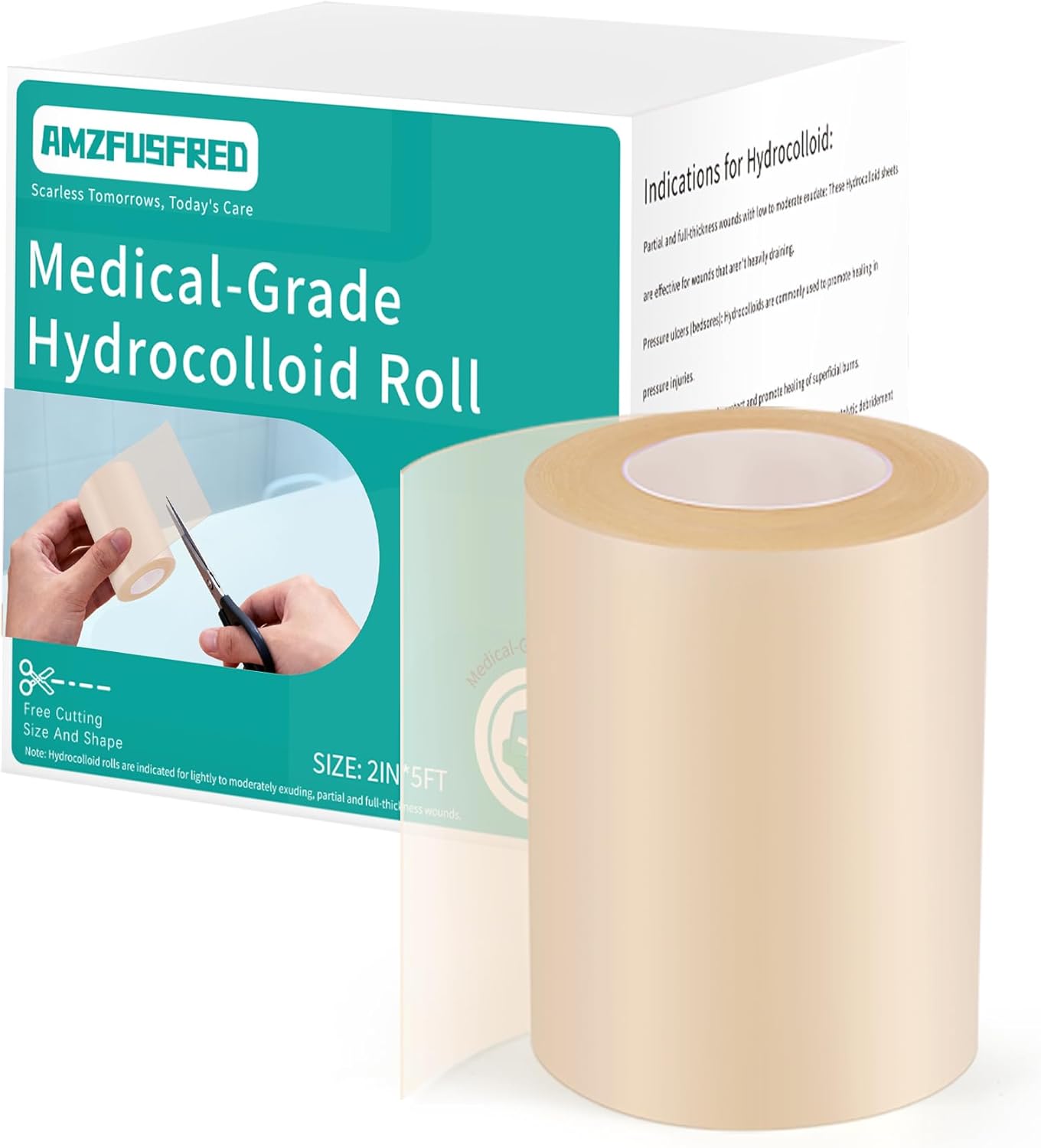 New Hydrocolloid Roll,2in*5ft Hydrocolloid Bandages for Wound Care,Medical-Grade Hydrocolloid Patch Bandages with Self-Adhesive, Flexible & Waterproof DIY Size & Shape (5FT)