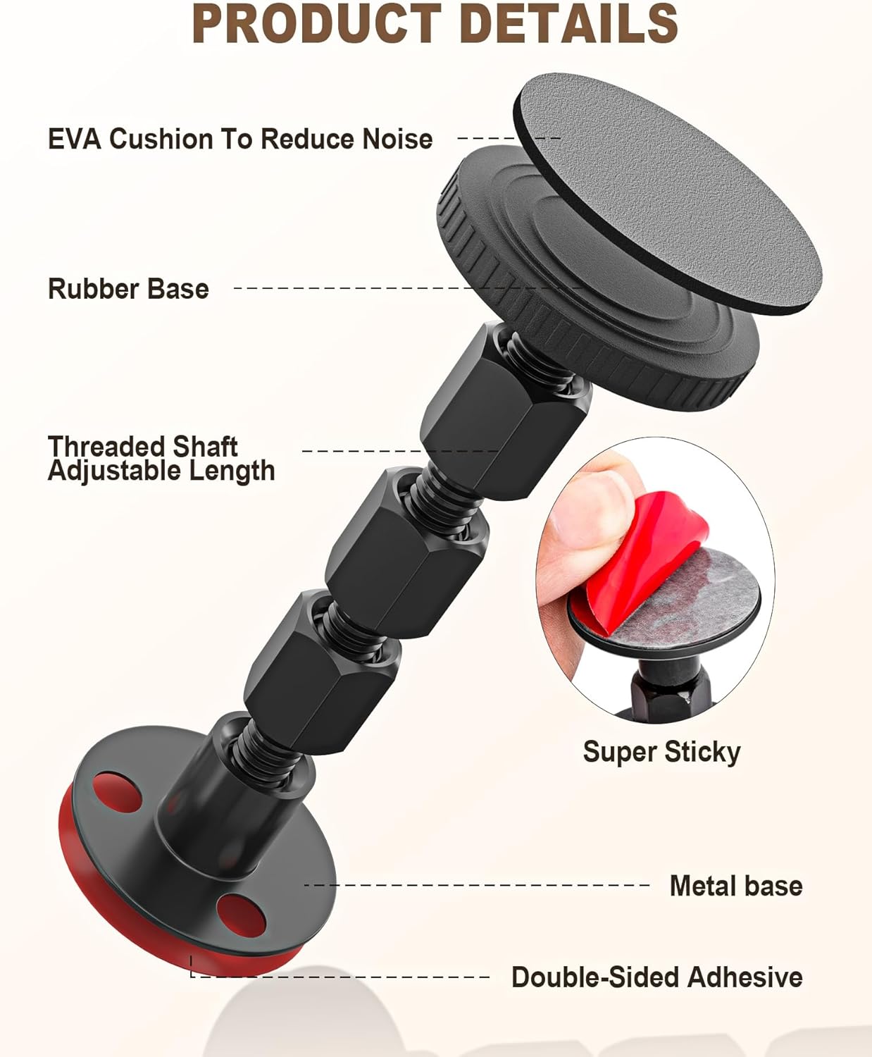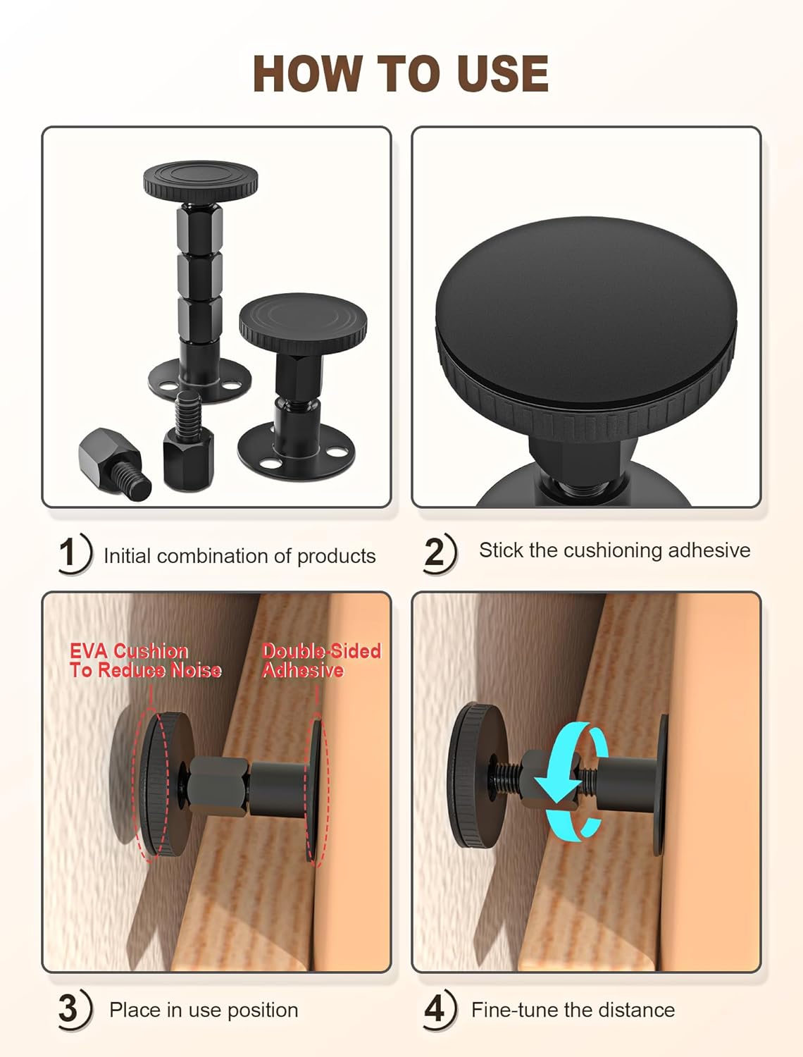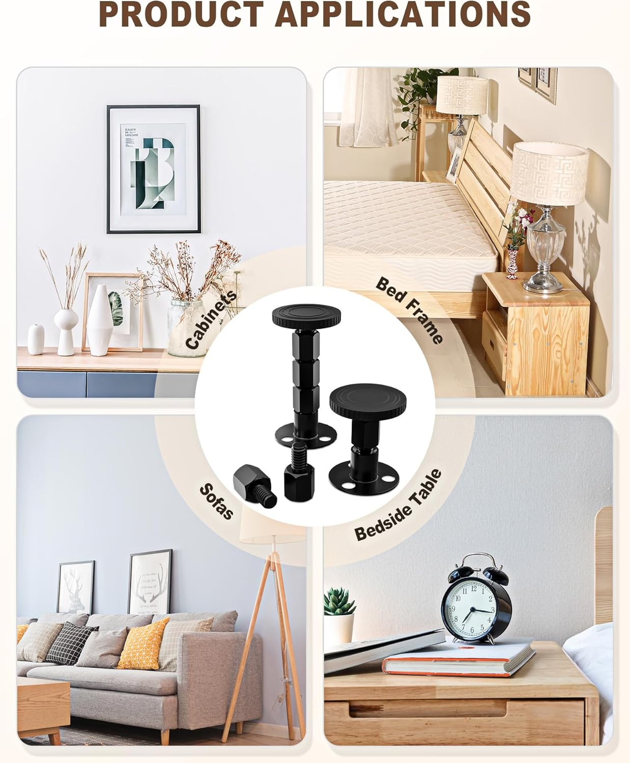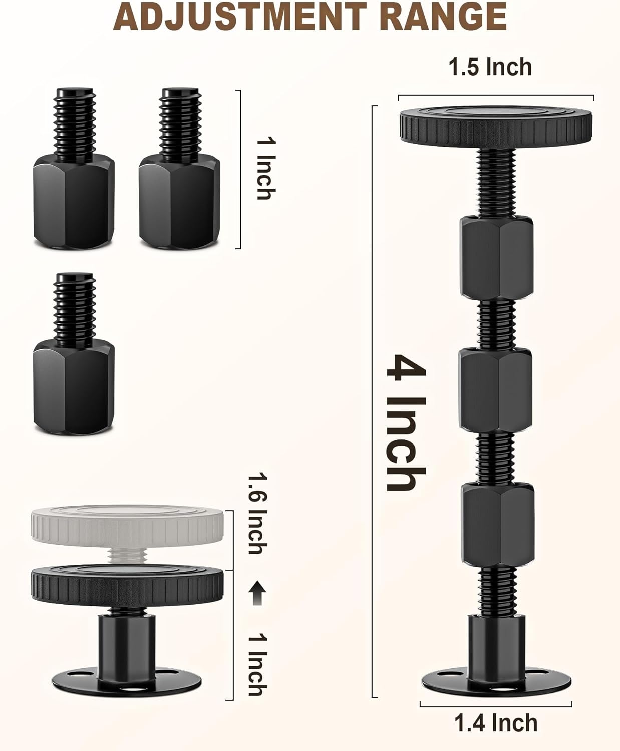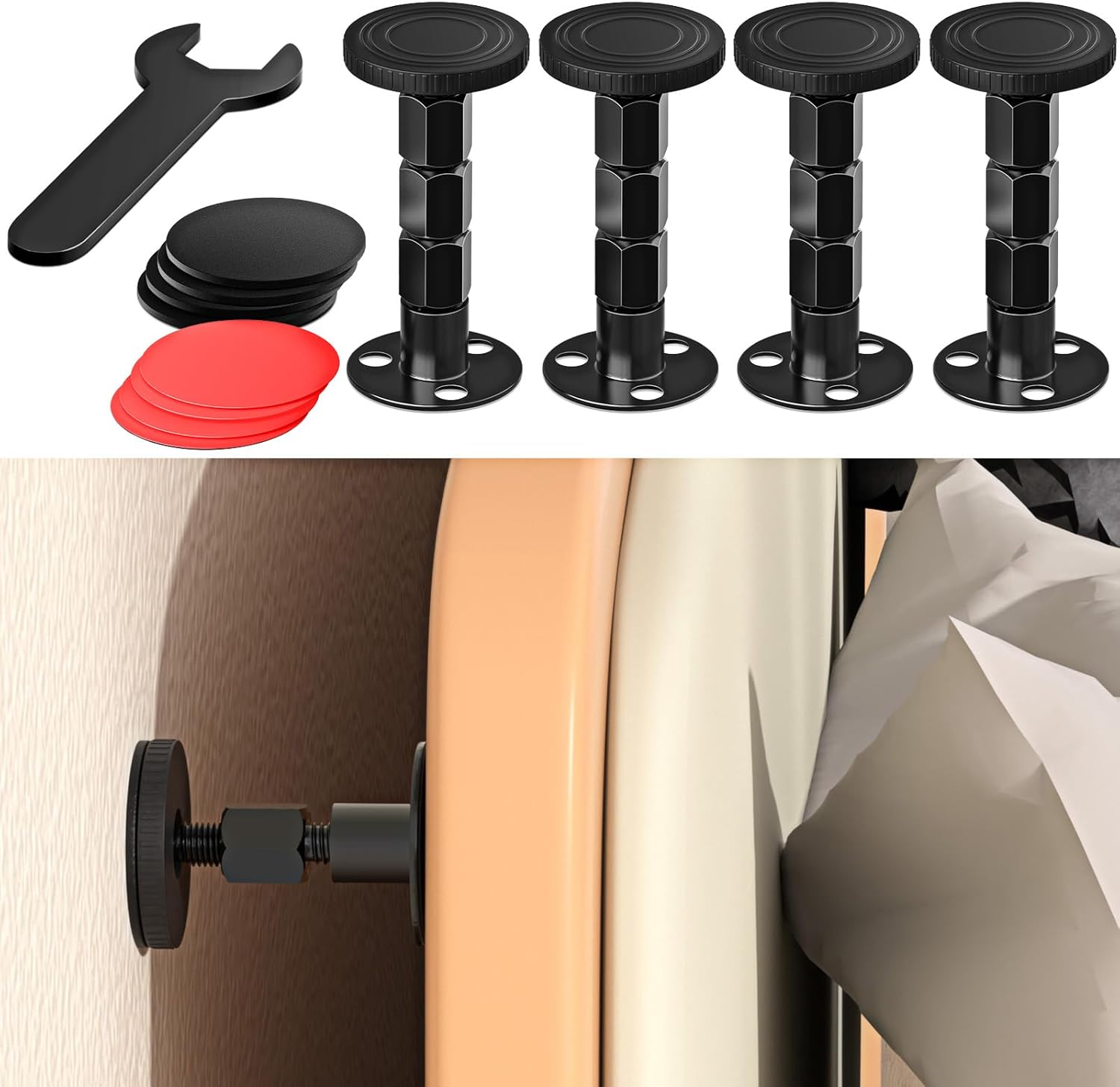 4PCS Adjustable Threaded Bed Frame Anti-Shake Tool, Upgraded Headboard stoppers with Free Furniture Pads, Easy Installation Bedside Anti-Shake Tool for Headboards, Cabinets and Sofas, 1.18-4.13in