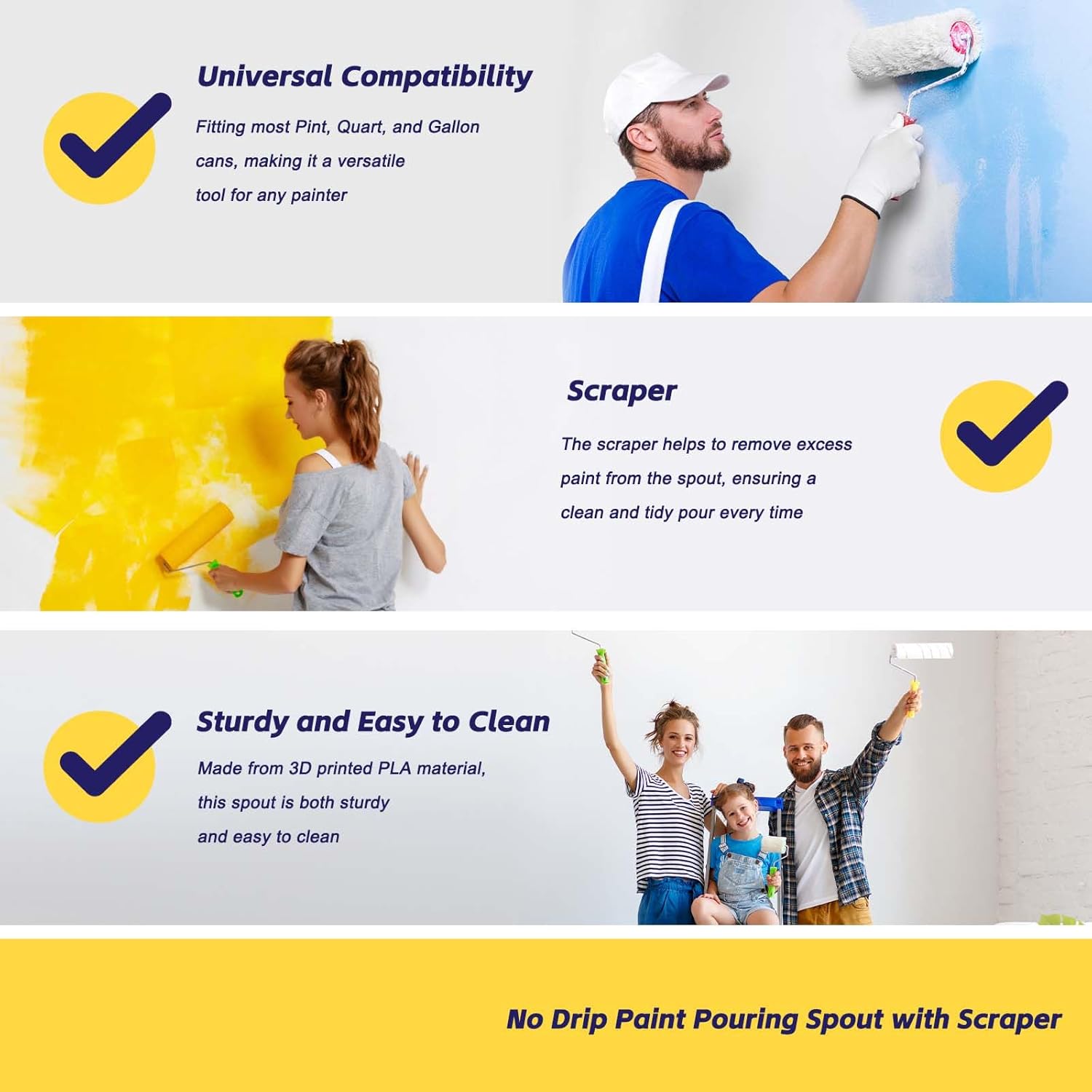 No Drip Paint Pouring Spout with Scraper - Mess Free, Reusable, Universal Fit for Pint, Quart & Gallon Cans