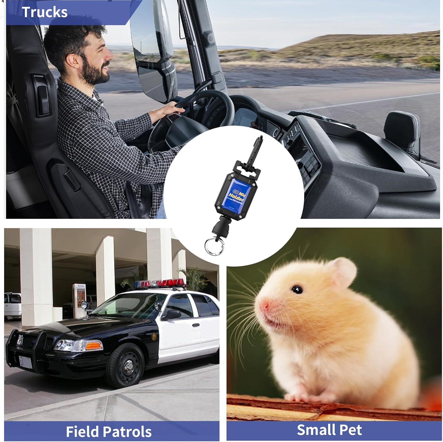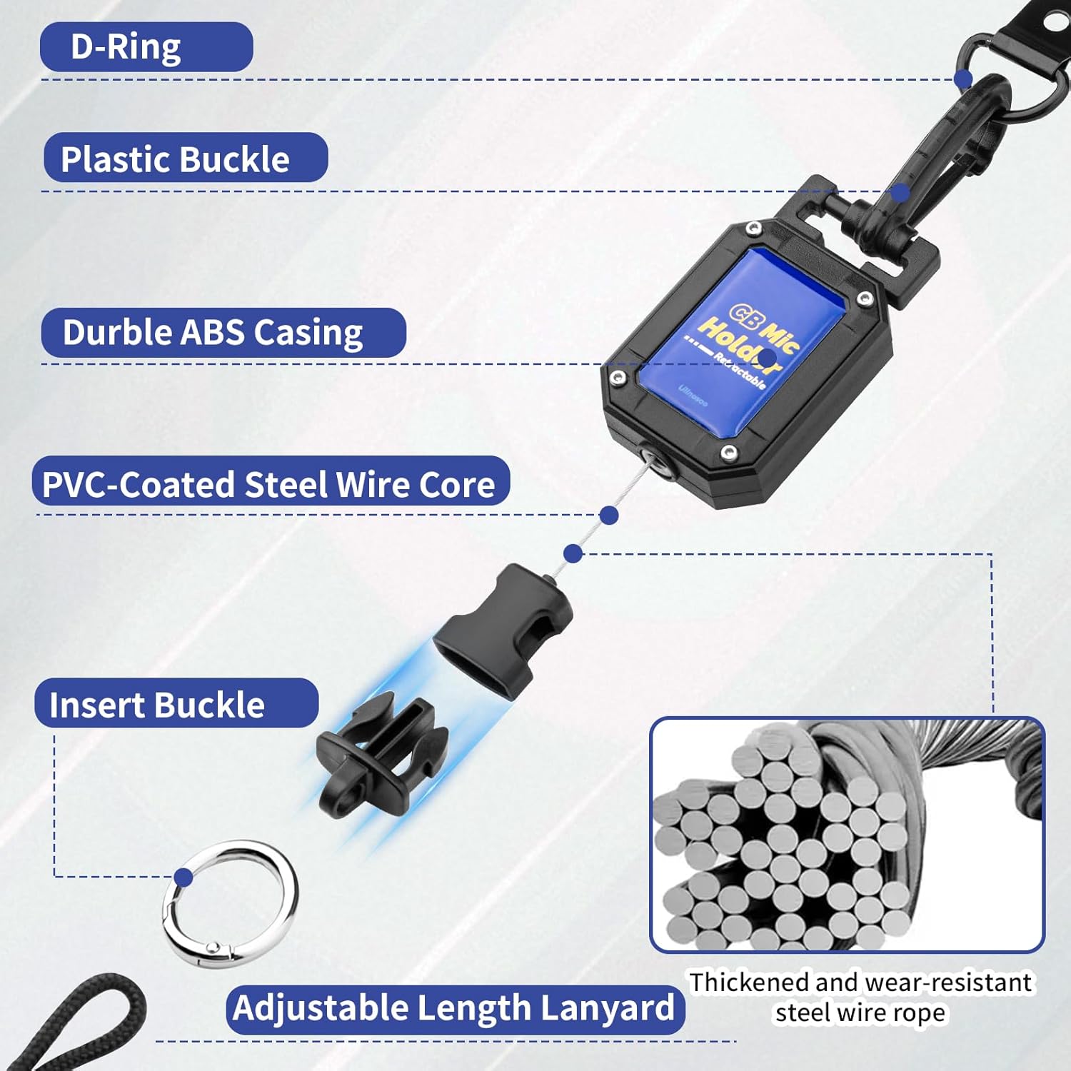 CB Mic Holder, Retractable Microphone Hanger Keeper CB Radio Accessory, Heavy-Duty Mic Tether 32" Stainless Steel Cord with Adjustable Mount Kit, Perfect for Truck Driver Diving