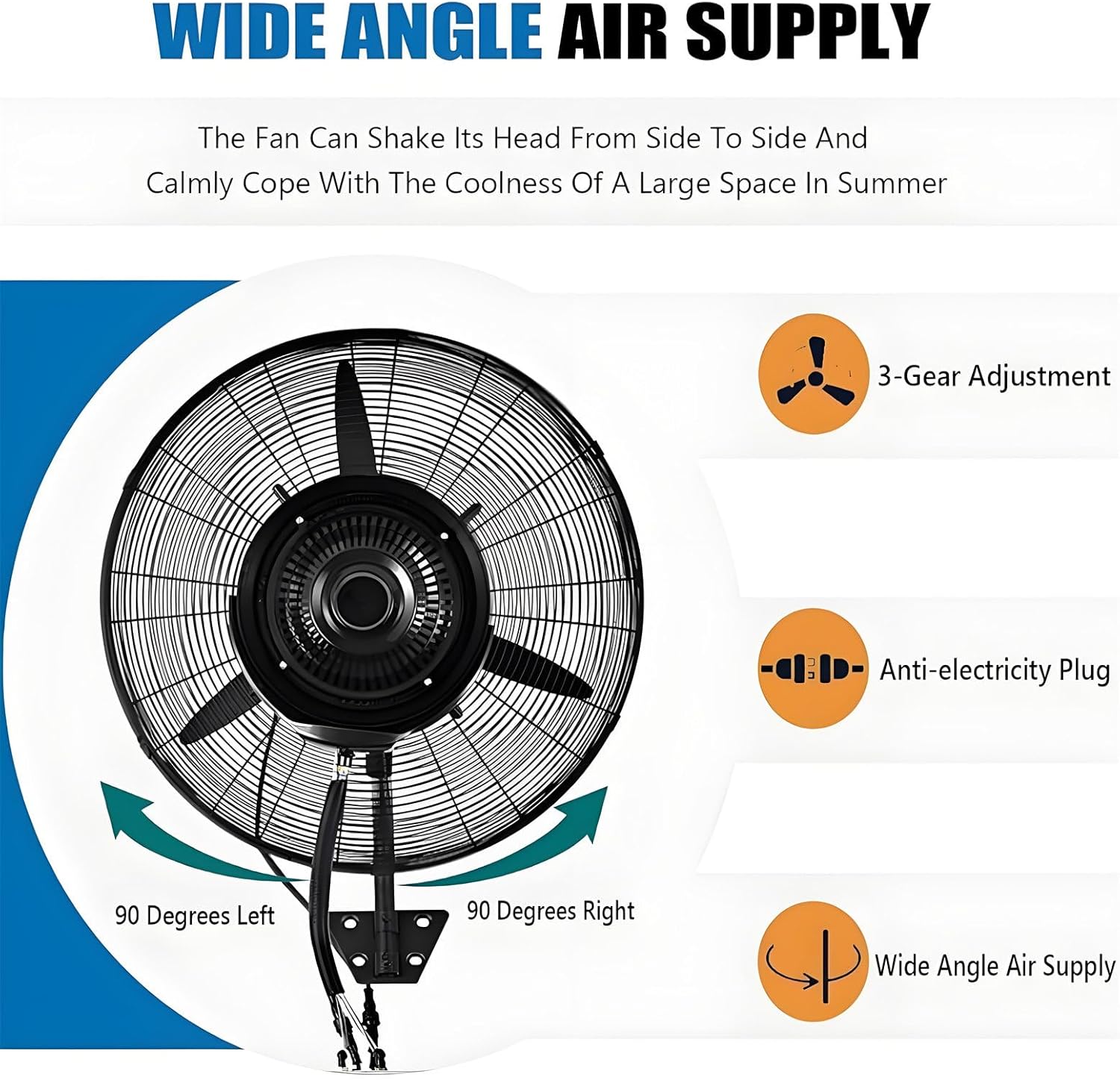 90° Oscillating Wall Mount Misting Fan, Industrial Commercial Outdoor Fan, Waterproof Cooling Fan for Greenhouse, Garage, Workshop, Covered Patio,71cm/28in