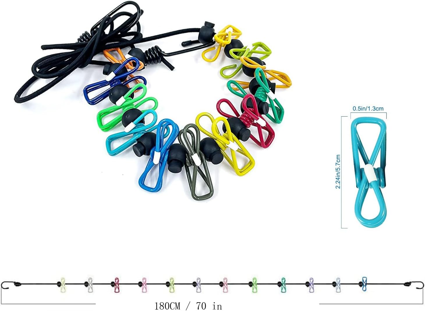 Clothesline,Retractable Portable Clothesline for Travel,Clothing line with 12 Clothes Clips,for Indoor and Outdoor Laundry Drying line,Outdoor Camping Accessories
