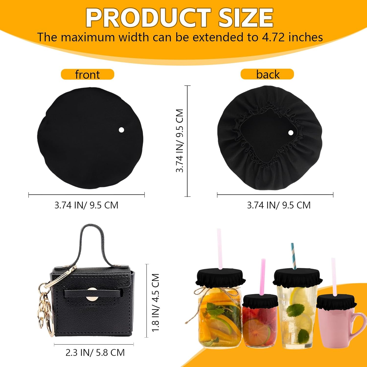 15Pcs Scrunchie Drink Cover with Keychain Pouch, 3.74" Reusable Elastic Polyester Drink Covers with Straw Holes for Alcohol Safety Protection, Fits Most Cups at Bar & Club Nights for Women Girls