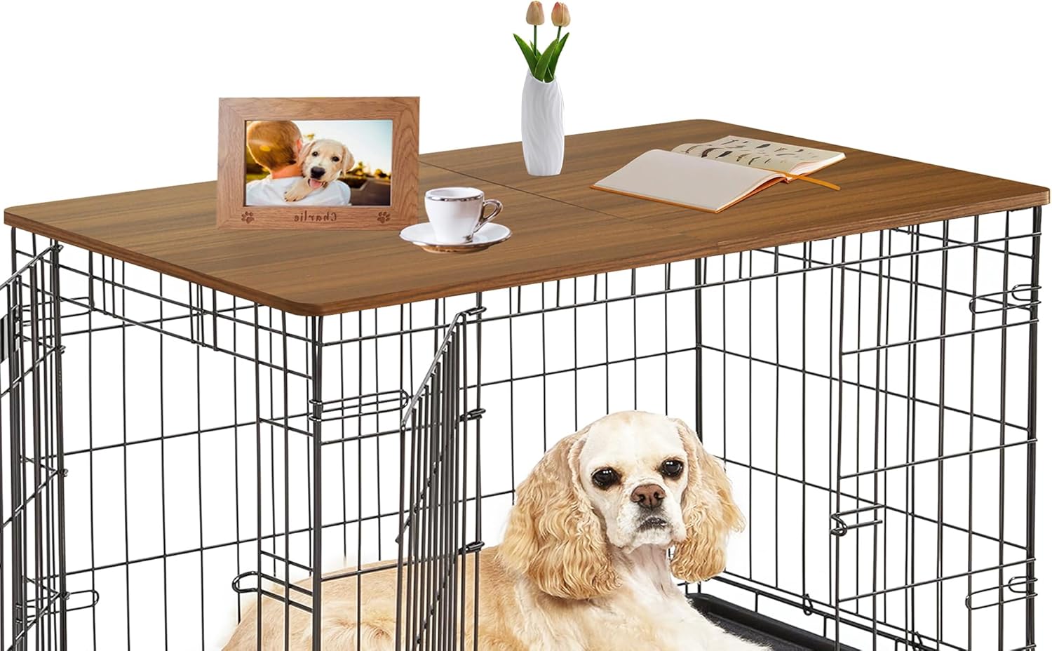 Deblue Foldable Dog Crate Topper, Wood Crate Topper for 48in Wire Dog Cages, Dog Kennel Table Top for Large Dog, Waterproof, Sturdy (48 inch)