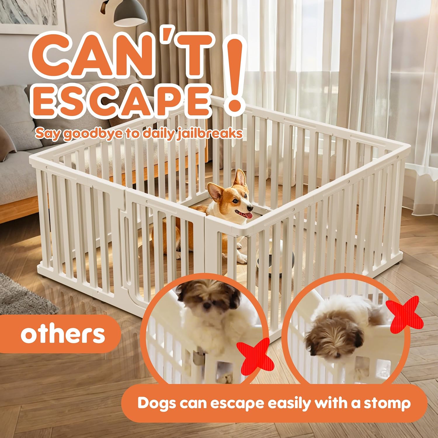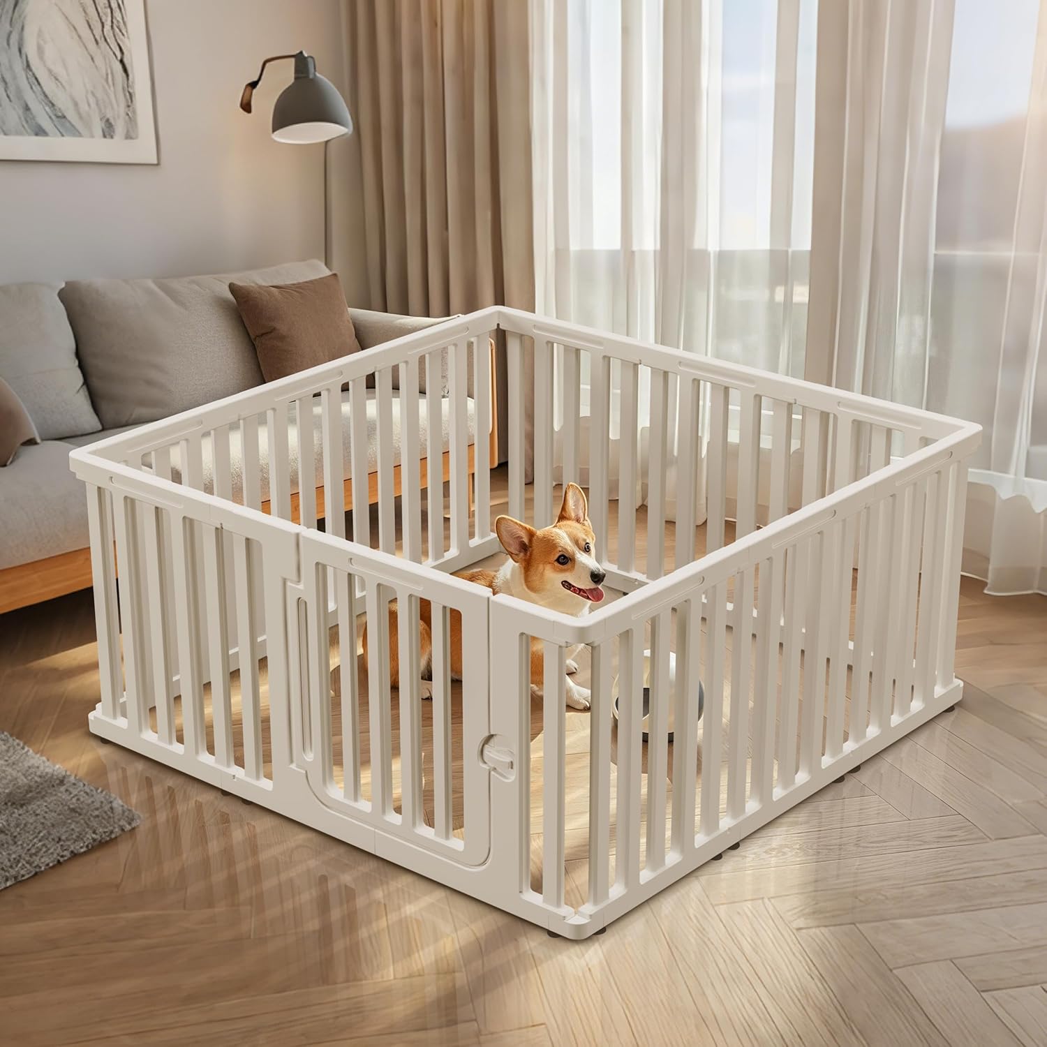 Safety is a top priority with this xpen for dogs, featuring rounded edges and secure locking mechanisms to prevent accidents and escapes. The height-adjustable panels make it easy to accommodate puppies as they grow or to separate multiple pets when needed. Lightweight and portable, this playpen is perfect for use at home, in the backyard, or while traveling.
