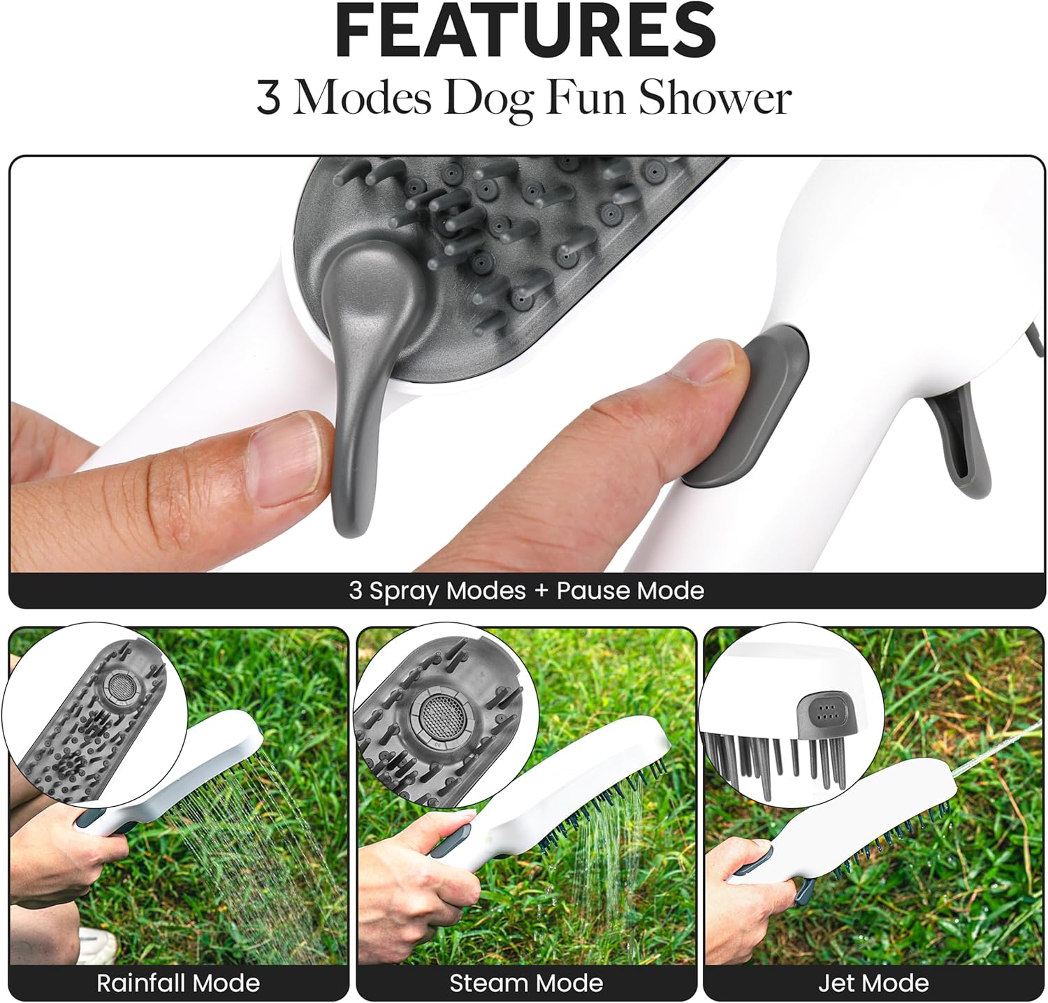 Dog shower attachment Portable with Pet Showerhead for Quick and Easy Dog Bathing & Cleaning – Dog Washing Wand with 3 Spray Modes, Pause Button, 6ft Flexible Hose and Effortless Installation