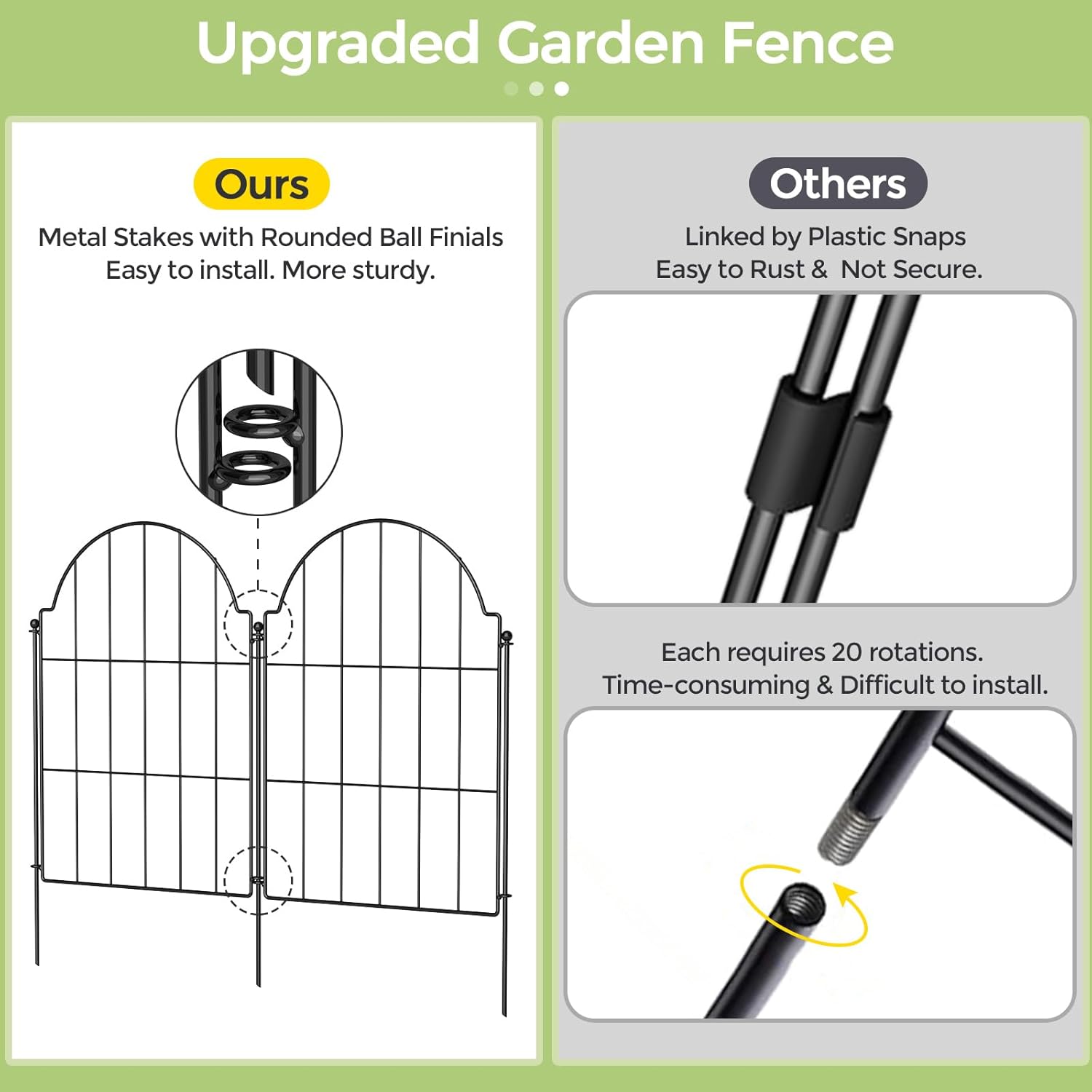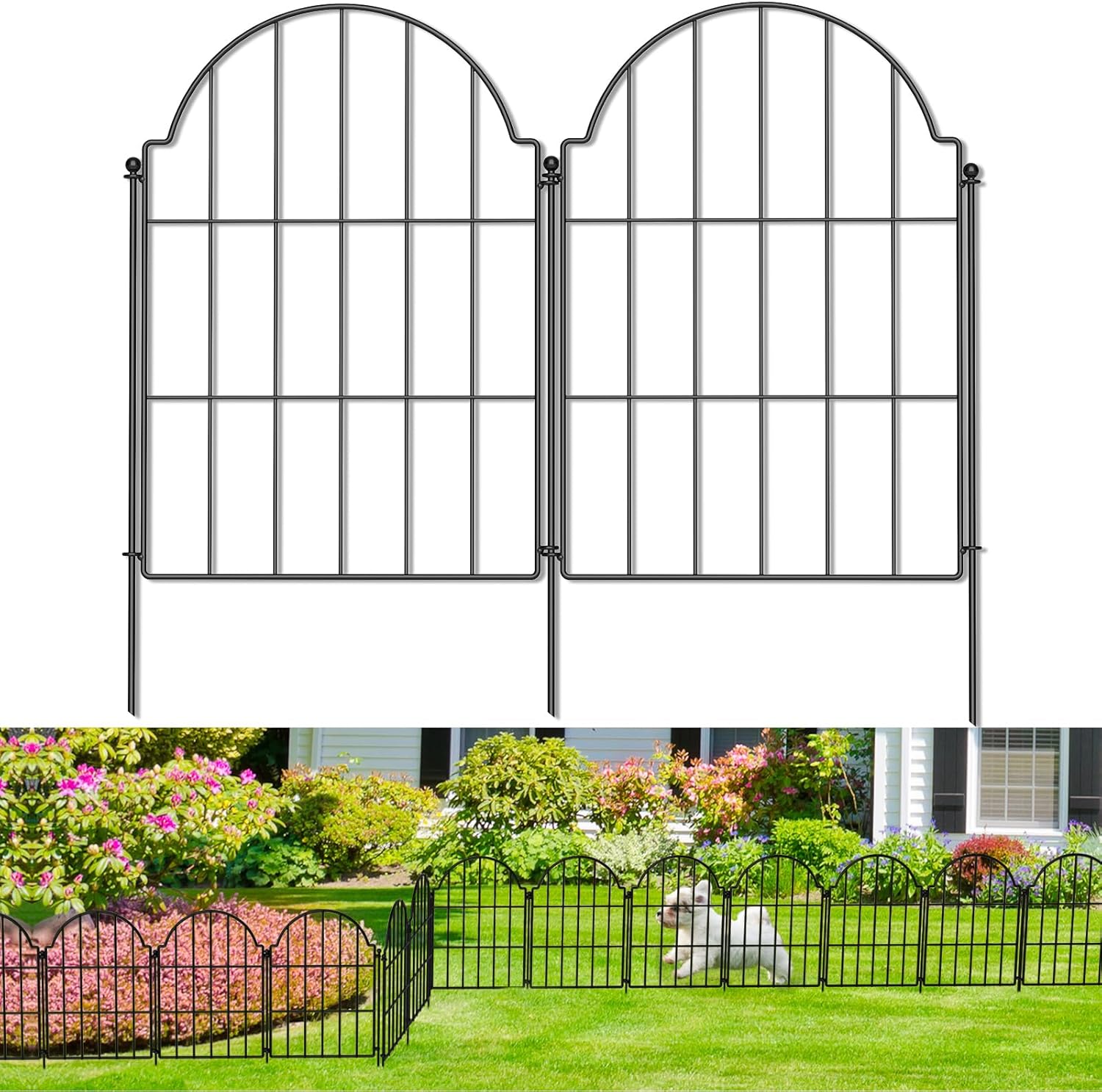 Rustproof Metal Garden Fence - 21in x 20.4ft, Animal Barrier for Dogs, Rabbits, Arched Fencing for Garden Beds, Patio, Outdoor, Landscape