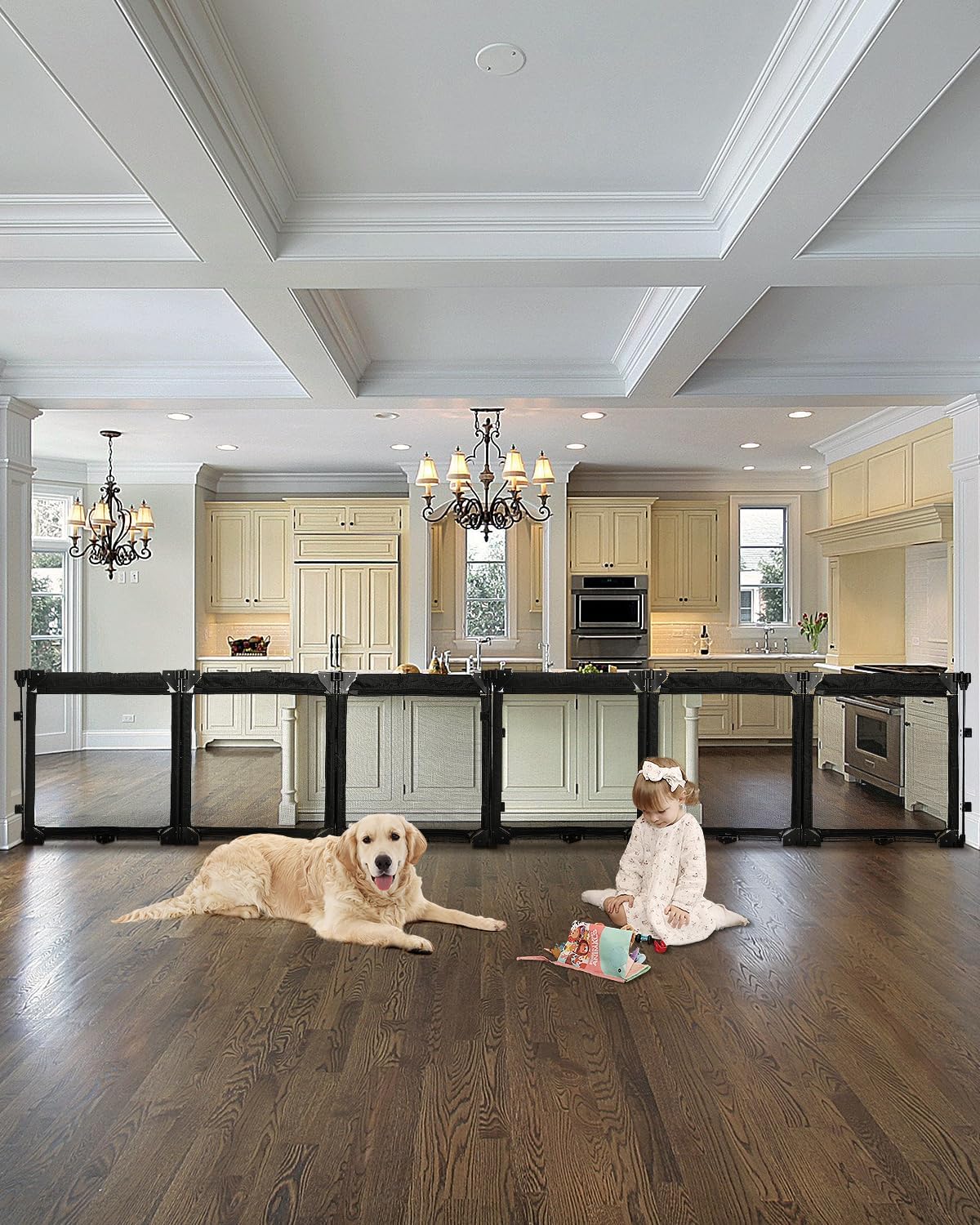 Extra Wide Baby Gate Playpen with Heat-Resistant Mesh,6 Panel Foldable Baby Fence,Indoor/Outdoor Safety Barrier,Dog Playpen & Fireplace Gate