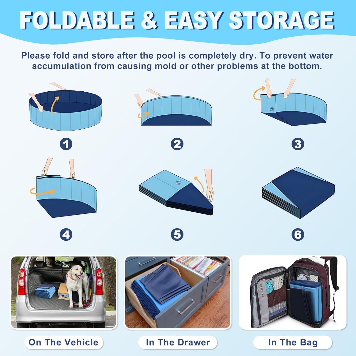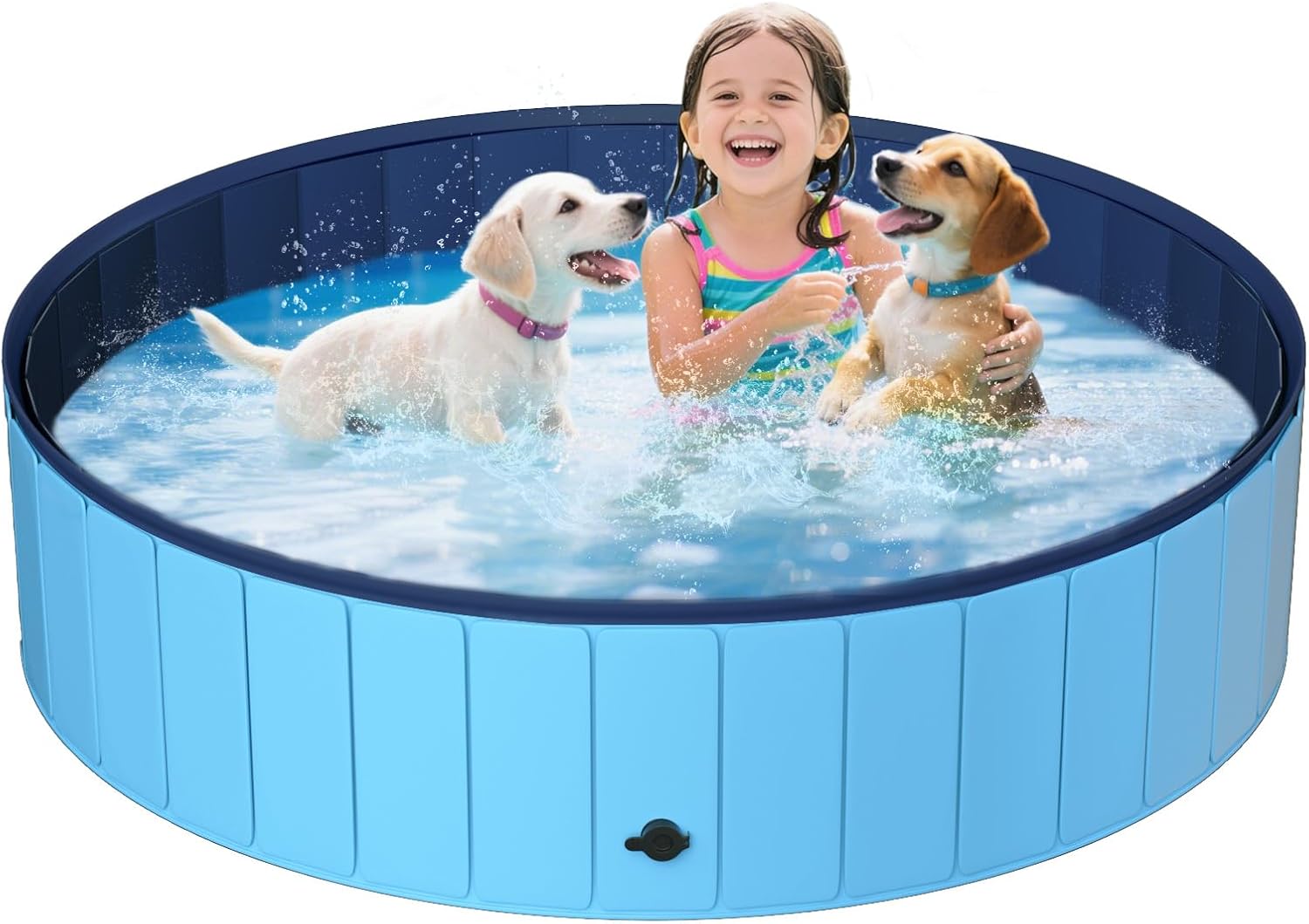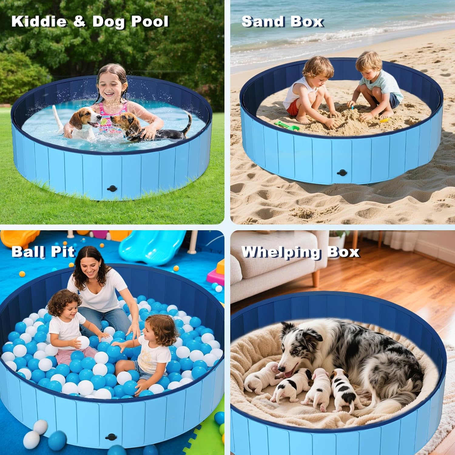 UCCY Foldable Dog Pool for Large Dogs Hard Plastic Kiddie Swimming Pool Non-Slip Portable Dog Bathtubs Collapsible Multi-Use Whelping Box Ball Pit Outdoor Pool for Backyard Duck Pond Blue XL-63"x12"