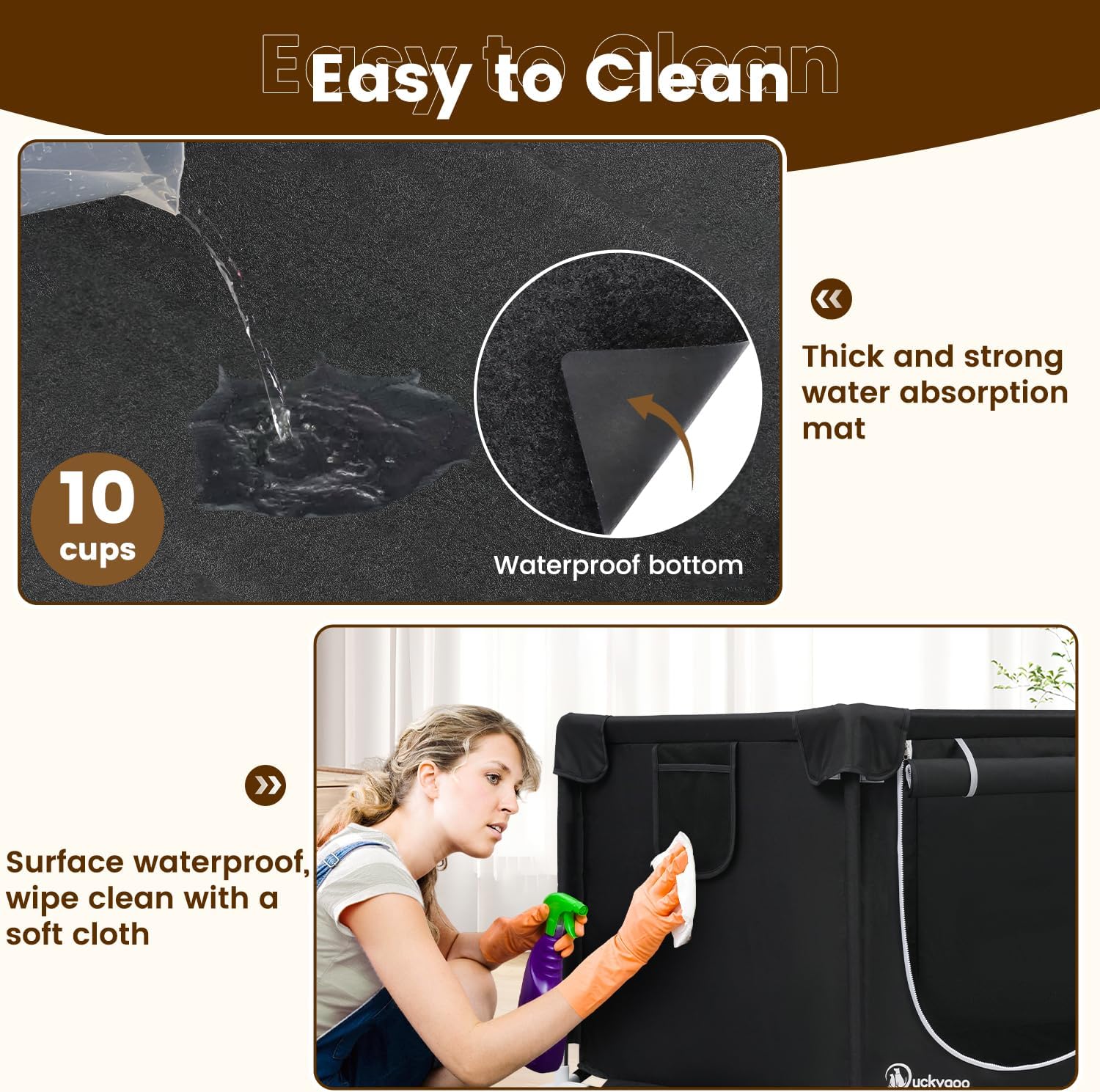 The Duckygoo Whelping Box for Dogs offers a cozy and convenient option for pet owners seeking a safe and comfortable space for their puppies during their early stages. Constructed from top-quality, waterproof material, this whelping box is not only durable but also reusable, making it a cost-effective choice. The box is equipped with absorbent pads that help maintain cleanliness and keep the area dry, making it perfect for whelping or nursing mothers and their adorable puppies.