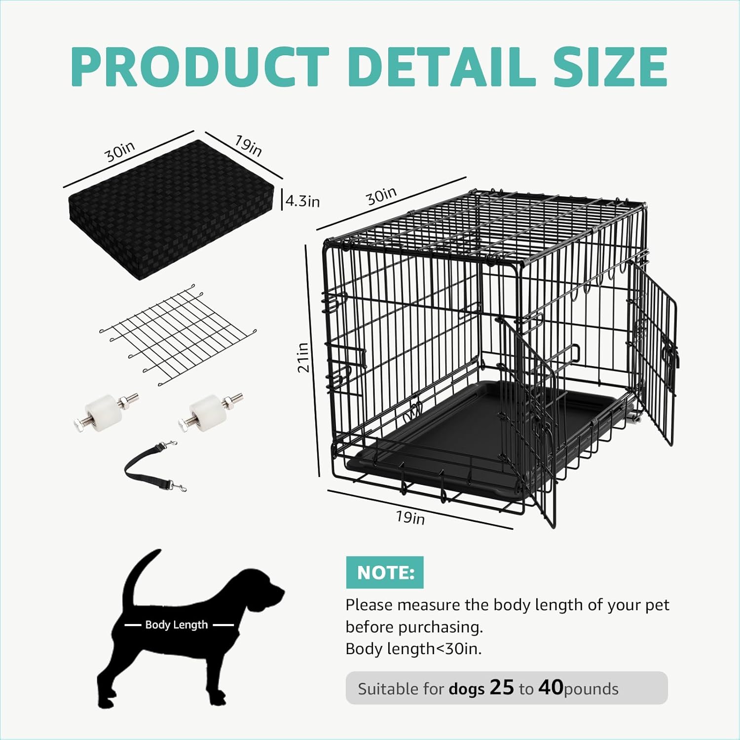 30 Inch Dog Crate for Medium Dogs - Cage Indoor Double Door Dog Kennel with Wheels and Topper Metal Wire Crates with Divider Fortable Small Pet Cages